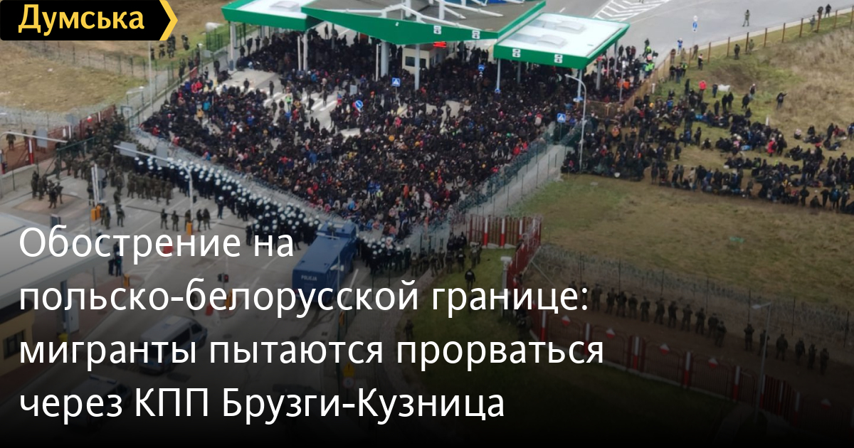 Обострение на польско-белорусской границе: мигранты пытаются прорваться через КПП Брузги-КузницаНесколько тысяч нелегальных мигрантов собрались возле пункта пропуска Брузги-Кузница, чтобы пройти к пограничному переходу и попасть в Польшу. Об этом сообщает «Радио Свобода» с места событий. По данным белорусских пограничников, на пограничном переходе находятся около 2100 мигрантов. Некоторые люди подошли вплотную к колючей проволоке, которая защищает границу Польши. Также сообщается, что мигрантам удалось сломать часть ограждения с белорусской стороны границы. Польская полиция начала информировать мигрантов о недопустимости пребывания у польской границы. Людей предупреждают, что их обманули белорусские силовики. Они якобы распространили фейк, что за мигрантами выехали автобусы из Германии. СМЕРТЬ РОССИЙСКИМ ОККУПАНТАМ! Заметили ошибку? Выделяйте слова с ошибкой и нажимайте control-enter |