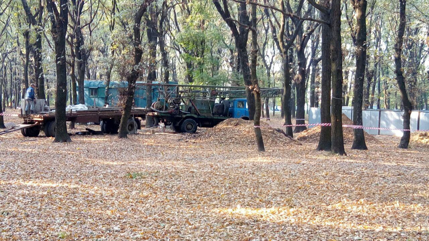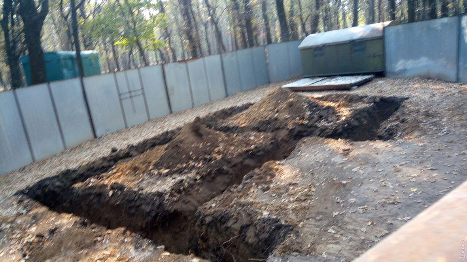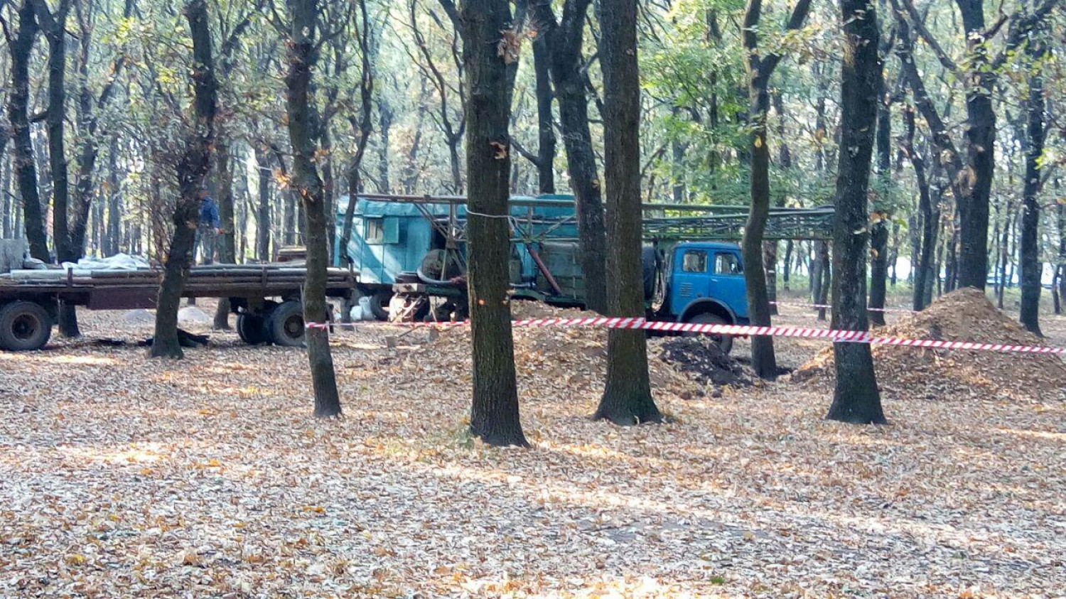 В зеленой зоне парка 411-й батареи начались работы по строительству нового бювета. Место огорожено забором, уже разрыли котлован.