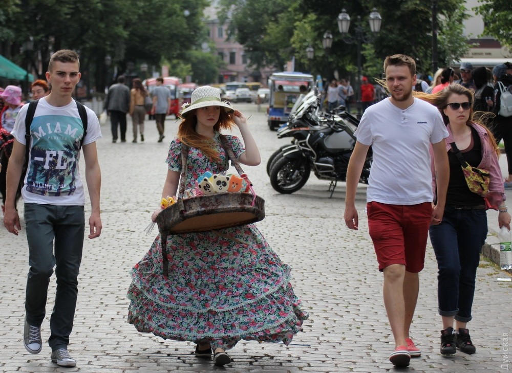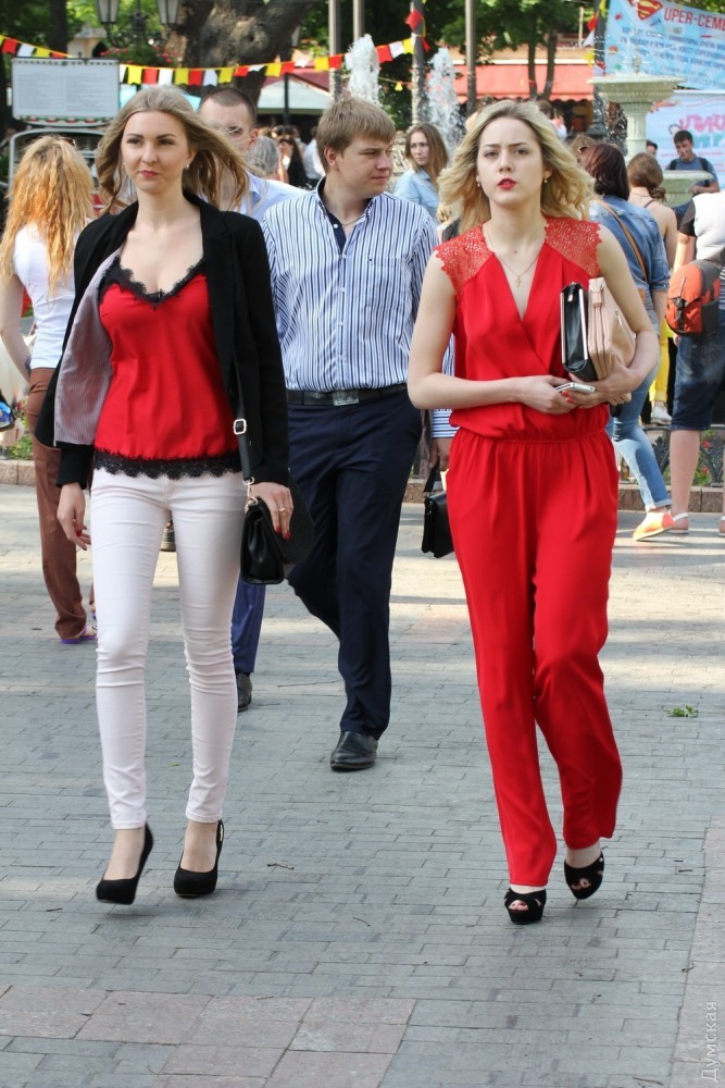 Обычный выходной на Дерибасовской: зажигательная зумба, человек-миньон и красотки на лабутенахНаш корреспондент прогулялся с фотокамерой по Дерибасовской, чтобы посмотреть, как проходит выходной на главной улице города в начале туристического сезона. Туристы, как мы убедились, есть. Экскурсионные бусики сновали туда и обратно, попадая, порой, в затор на пешеходной зоне. Кафе и ресторанчики не пустуют, скамейки в Горсаду оккупированы, а желающие сфотографироваться возле достопримечательностей буквально выстраиваются в очередь. Не жаловались на отсутствие клиентов продавцы безделушек, аниматоры и владельцы всякой живности, с которой, несмотря на запреты, все равно предлагают фотографироваться. Возле ротонды в Горсаду, как всегда, устраивали развлекательное мероприятие. На этот раз здесь были танцы. Каждый желающий мог научиться зажигательным движениям зумбы, цыганочке и прочим народным танцам. К слову, за непродолжительное время нахождения на Дерибасовской наш корреспондент в очередной раз убедился, что в Одессе – самые красивые девушки. Красотки прохаживались по главной улице города кто на лабутенах, кто в восхитительных штанах, а кто просто в кедах. Фото — Виталий Прус СМЕРТЬ РОСІЙСЬКИМ ОКУПАНТАМ! Помітили помилку? Виділяйте слова з помилкою та натискайте control-enter |