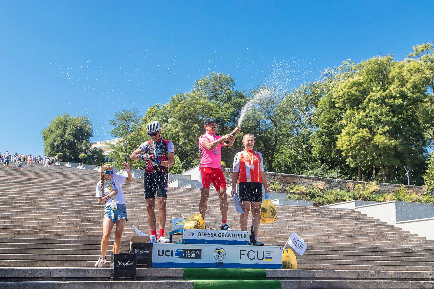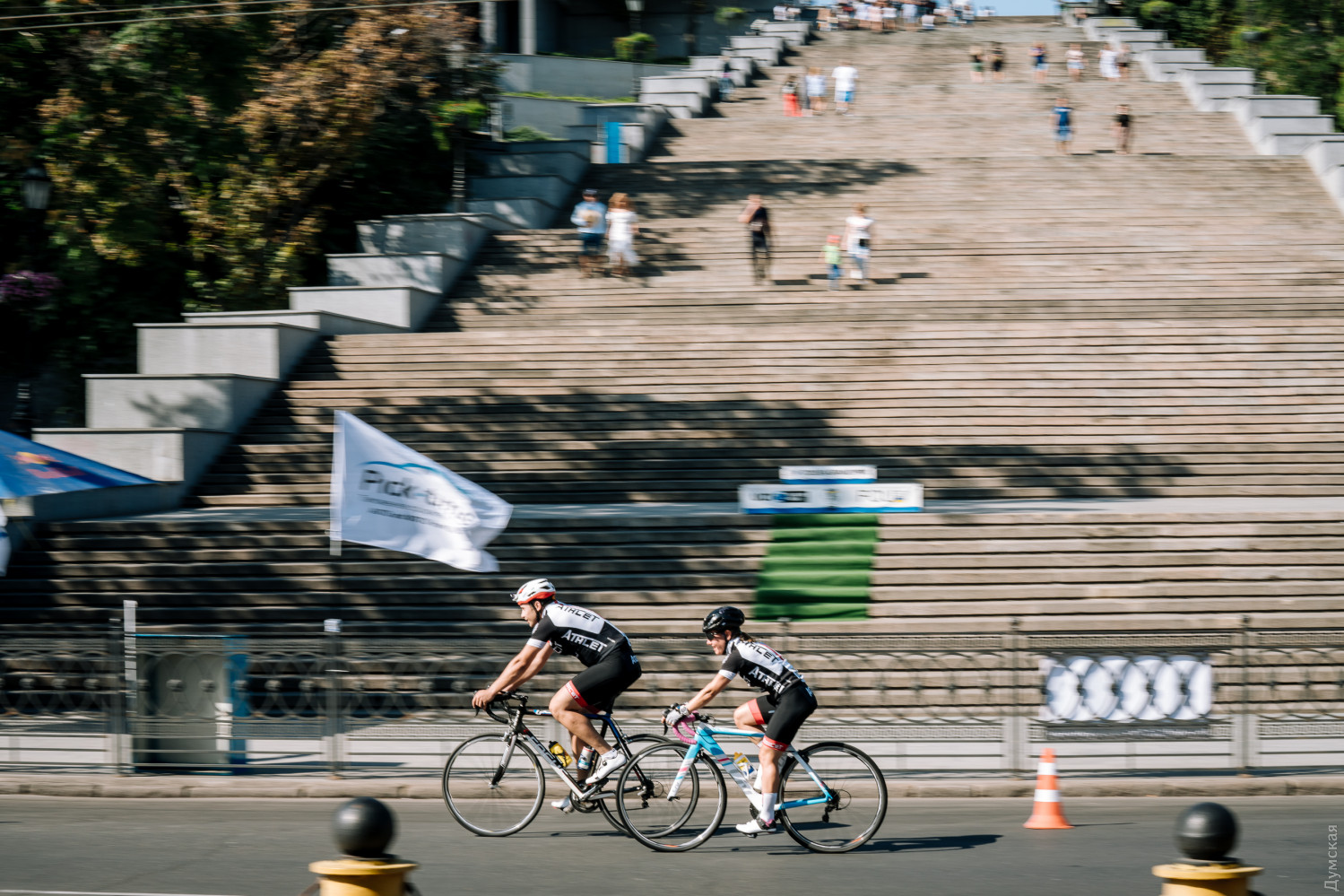 Сегодняшним субботним утром в самом центре Одессы под Потемкинской лестницей стартовал масштабный спортивный праздник — шоссейная гонка-критериум Odessa Gran Prix. В течение двух дней спортсмены со всей Украины будут соревноваться в скорости преодоления городских улиц на двухколесном транспорте. В первый день велосипедисты гоняли по Приморской улице от Военного до Польского спусков. Спортсмены признаются, что маршрут выдался не из легких — довольно сложным оказался подъем к Морвокзалу. В гонке-критериум наравне со скоростью спортсмена важна его тактика, ведь лучшим становится тот велогонщик, который набрал большее количество баллов — они фиксируются на каждом четном кругу. В итоге, это приводит к тому, что у спортсменов не один, а несколько финишей, на каждом из которых нужно максимально выложиться и побороться с конкурентами. Кроме того, гонка по городским улицам довольно травматична. Так, из-за технической поломки не вошел в поворот и получил небольшую травму одесский велогонщик и фотограф Виктор Скрыпник. По признанию спортсмена, травма хоть и небольшая, однако скорее всего не позволит ему принять участие в завтрашних групповых заездах. «Отличная погода и очень хорошая организация, — признается Виктор. — Но, к сожалению, из-за технической поломки не смогу продолжить». Андрей Гладкий пришел в велоспорт 25 лет назад. Сегодня он занял первое место в категории М2 (возраст от 40 до 59). Победитель признается, что городская гонка значительно интересней, чем шоссейная. «Это очень захватывающе — много зрителей, сложные повороты, — делится впечатлениями спортсмен. — Между прочим, в Европе больше гонок проводится как раз в городе, для зрителей, чтобы люди смотрели и наслаждались». Несмотря на то, что в сегодняшней гонке был серьезный фаворит — Эльчин Асадов, участник чемпионата мира, член национальной сборной Азербайджана, выступающий за профессиональный клуб «Bahrain Cycling Academy» — одесситы смогли вырвать у чемпиона победу. Именитый велосипедист стал третьим в самой сильной группе 16-39 лет. Награждали спортсменов на ступеньках Потемкинской лестницы. Естественно, не обошлось без брызг шампанского. Призовые места распределились следующим образом: В категории женщины: 1 место — Екатерина Бандривская 2 место — Екатерина Савина В категории мужчины 60+: 1 место — Валерий Нарижный 2 место — Лычко 3 место — Вахромеев В категории М2 (мужчины 40-59 лет) 1 место — Андрей Гладкий 2 — место — Виктор Галицкий 3 — место — Иван Фомичев В категории М1 (мужчины 16-39 лет) 1 место — Александр Суруткович 2 место — Станислав Рудой 3 место — Эльчин Асадов Отметим, завтра пройдет кольцевая групповая гонка. Организаторы обещают, что будет зрелищно. Фото — Юрий Макалис и Александр Гиманов СМЕРТЬ РОСІЙСЬКИМ ОКУПАНТАМ! Помітили помилку? Виділяйте слова з помилкою та натискайте control-enter |