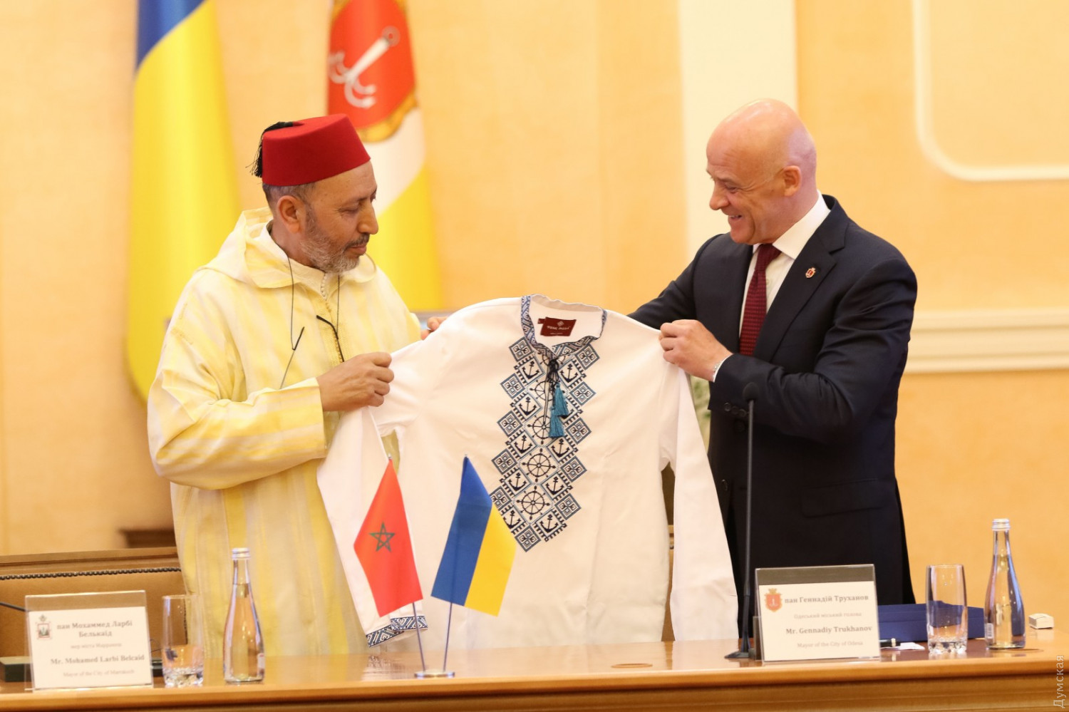 Одесса и Марракеш стали городами-партнерами: мэр Труханов подарил зарубежному коллеге вышиванку