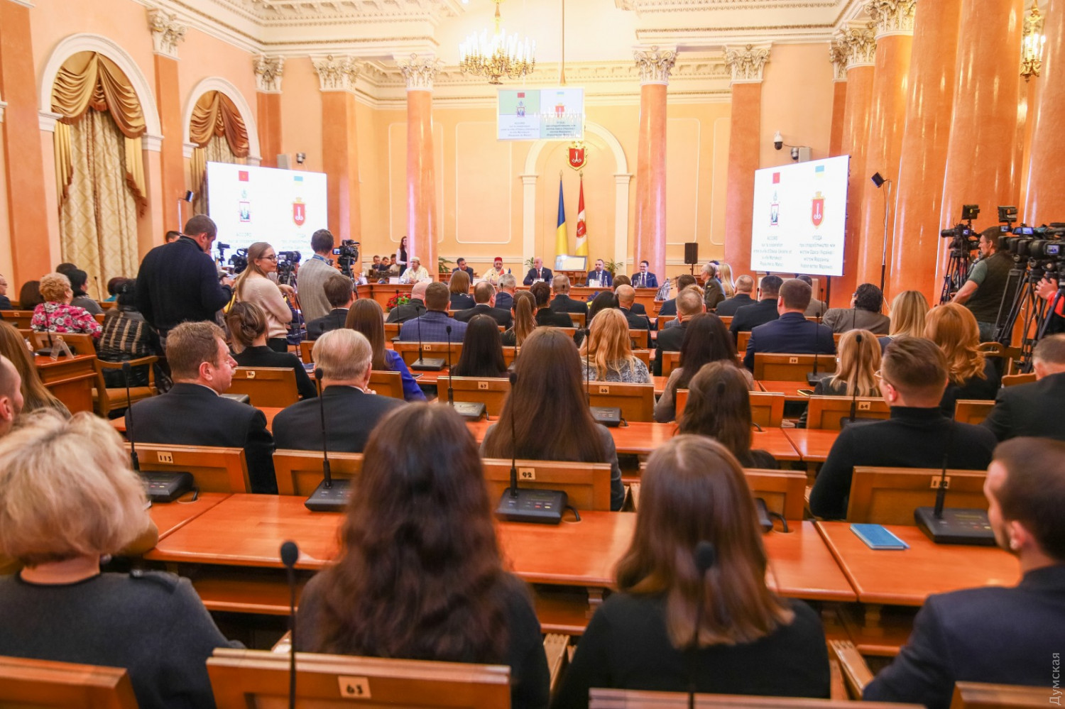 На торжественной церемонии подписания присутствовали: представители муниципалитетов обоих городов, дипломаты, Почетные граждане Одессы, депутаты.