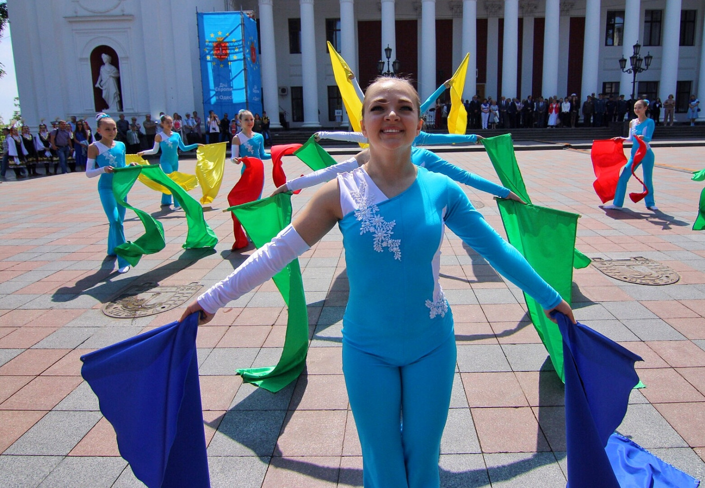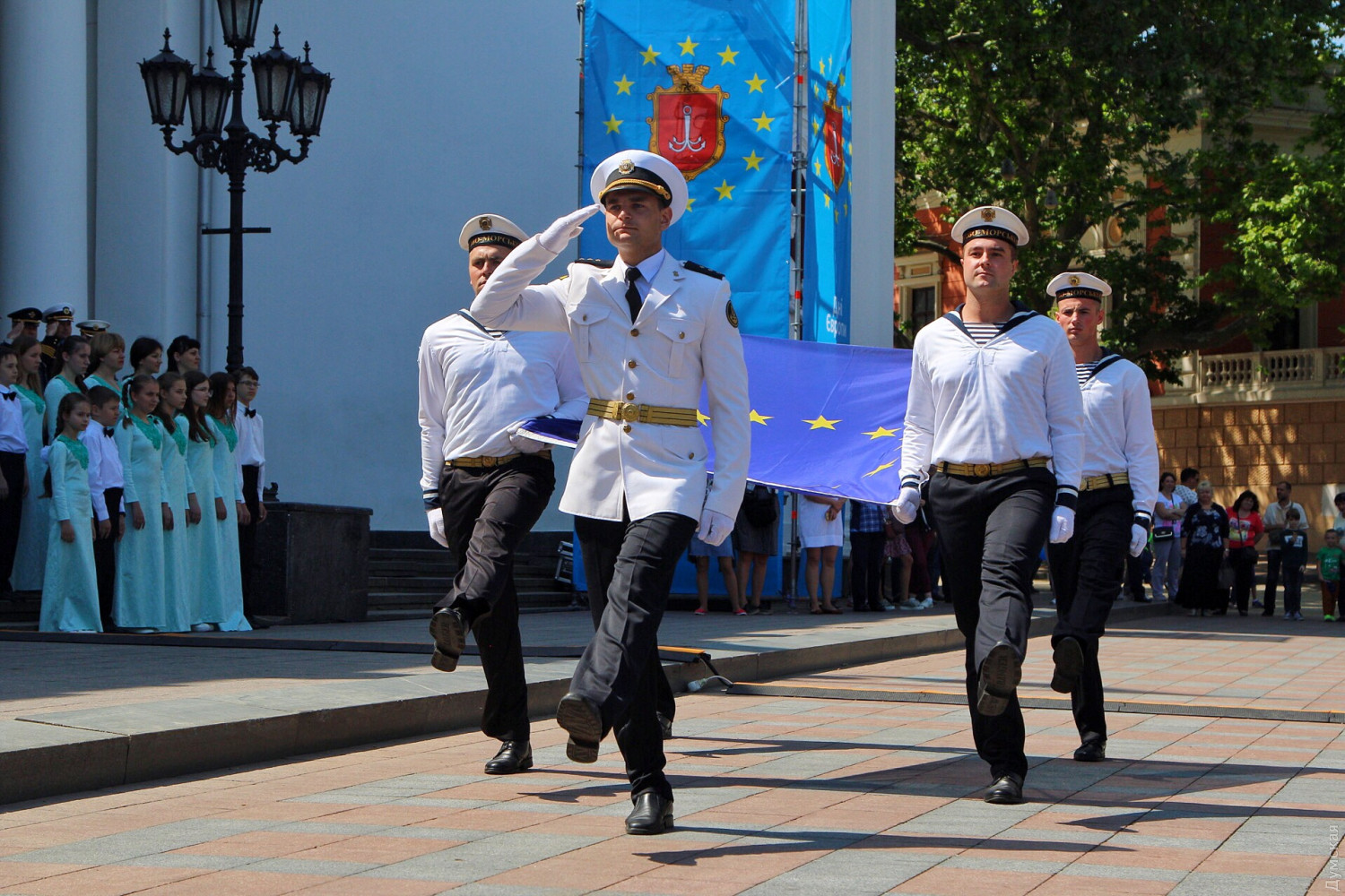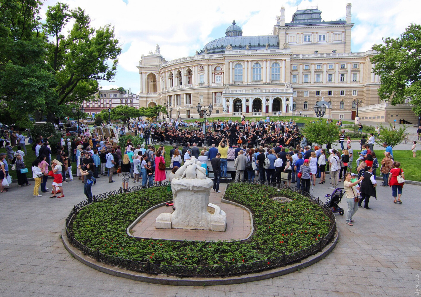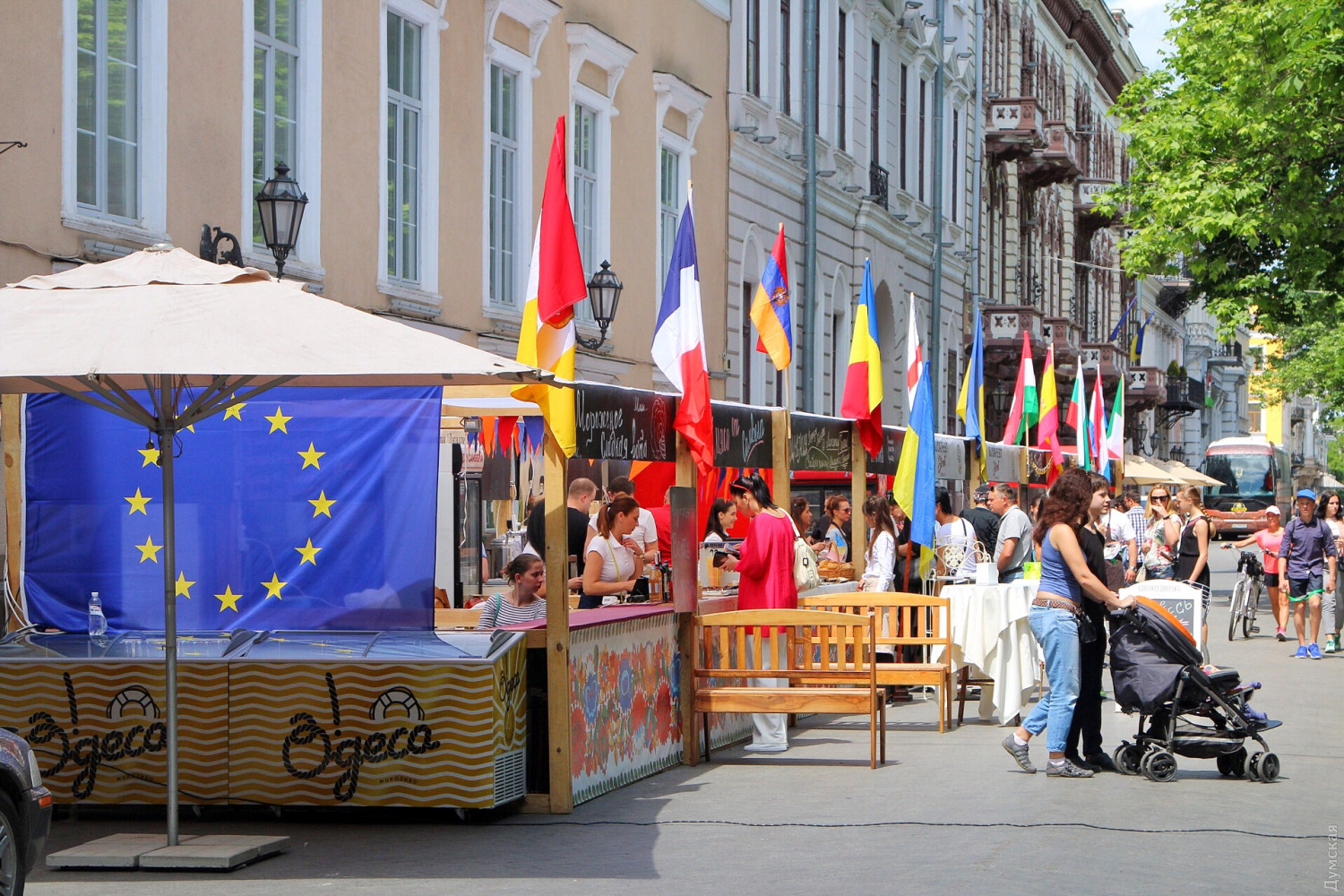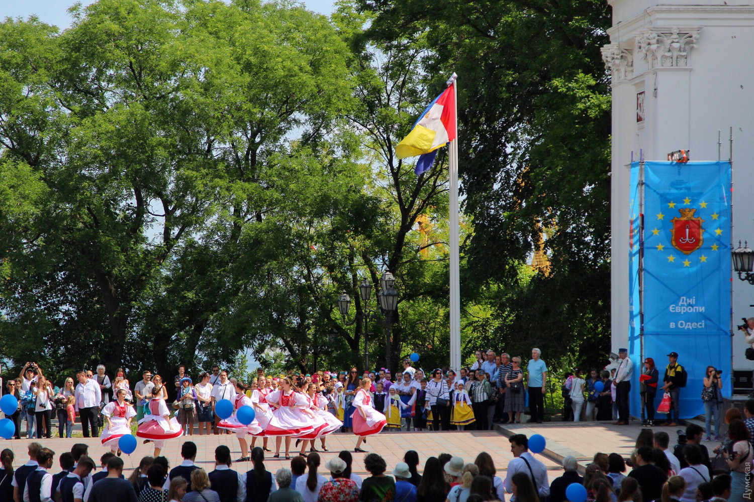 День Европы в Одессе: возле Оперного можно послушать Штрауса, а на Приморском бульваре вкусить испанской паэльиОдесса сегодня, 19 мая, масштабно празднует День Европы. Торжественные мероприятия начались с поднятия флага Евросоюза на флагшток перед мэрией. Городской голова Геннадий Труханов поздравил присутствующих с праздником. «Сегодня карта Одессы на один день превратится в карту Европы, лозунг Европы — единство в многообразии как никакой другой подходит Одессе. Наш город не знал и не будет знать ни одного конфликта на межнациональной почве», — сказал мэр. Специально к празднику на Приморском бульваре установлен фуд-корт, предлагающий национальные блюда стран, входящих в Евросоюз. А возле Оперного театра под открытым небом с классическими произведениями выступил оркестр областной Филармонии под руководством Хобарта Эрла. Фото, видео: Александр Гиманов