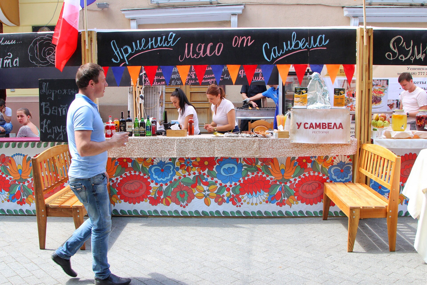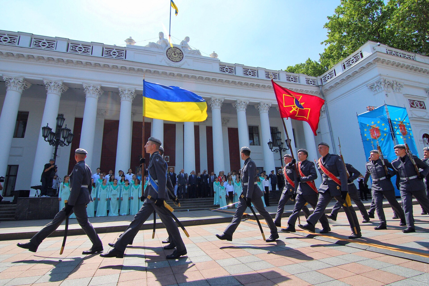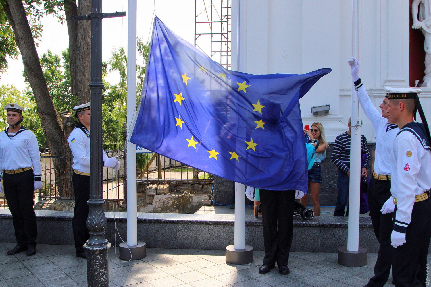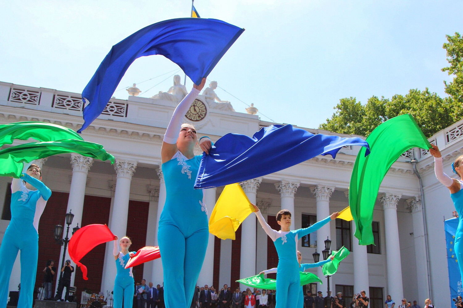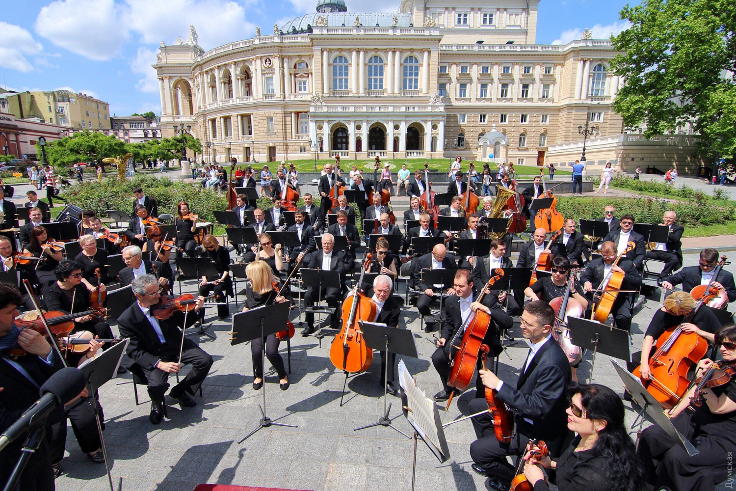 День Европы в Одессе: возле Оперного можно послушать Штрауса, а на Приморском бульваре вкусить испанской паэльиОдесса сегодня, 19 мая, масштабно празднует День Европы. Торжественные мероприятия начались с поднятия флага Евросоюза на флагшток перед мэрией. Городской голова Геннадий Труханов поздравил присутствующих с праздником. «Сегодня карта Одессы на один день превратится в карту Европы, лозунг Европы — единство в многообразии как никакой другой подходит Одессе. Наш город не знал и не будет знать ни одного конфликта на межнациональной почве», — сказал мэр. Специально к празднику на Приморском бульваре установлен фуд-корт, предлагающий национальные блюда стран, входящих в Евросоюз. А возле Оперного театра под открытым небом с классическими произведениями выступил оркестр областной Филармонии под руководством Хобарта Эрла. Фото, видео: Александр Гиманов