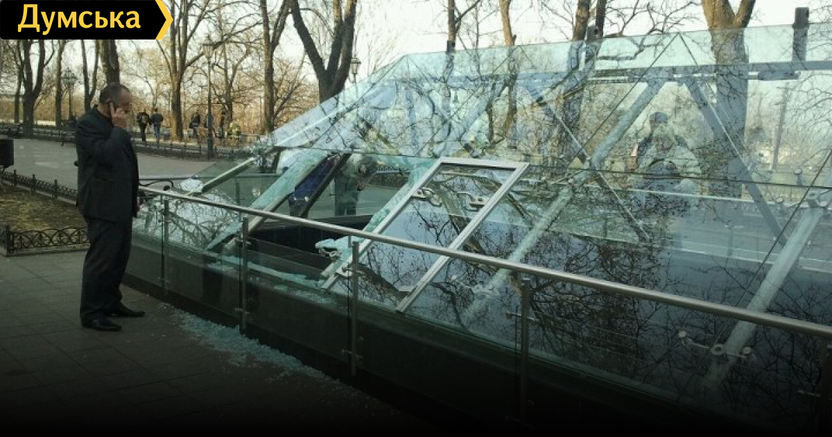 Одесса: на Приморском разбили стекло пирамиды-музея