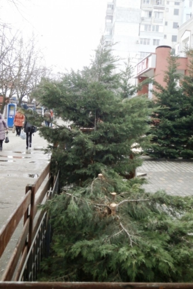 Одесса: на Таирова незаконно вырубили девять хвойных деревьев