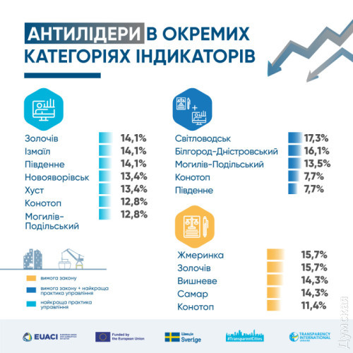 Як повідомили «Думській» у міськраді, чиновники вже ознайомилися з результатами рейтингу. «Ми аналізуємо результати, опубліковані Transparency International Ukraine. Ми працюємо з цією організацією вже багато років, і будемо й надалі спілкуватися з її представниками, щоб у майбутньому наші показники тільки поліпшувалися», — зазначили у пресслужбі мерії Одеси. Водночас у трьох великих містах регіону ситуація ще гірша. Мерії Білгород-Дністровського (17,5), Південного (19,5) та Ізмаїла (22,5) потрапили до десятки найбільш закритих у країні. Один із висновків — існує помірний зв'язок між фінансовою спроможністю міст, кількістю населення або регіоном. «Водночас узагалі не помічено залежності рівня прозорості та кількістю тривог. Найбільше рівень прозорості міст залежить від політичної волі керівництва та системності, сталості зусиль, що їх докладають, аби впроваджувати відповідні механізми», — йдеться в дослідженні. Дослідники розробили рекомендації, які допоможуть підвищити прозорість і доступність органів місцевого самоврядування. Частина з них для Одеси абсолютно неактуальні. Наша мерія, наприклад, і так заздалегідь анонсує засідання ради, виконкому та постійних комісій, частково оприлюднює їхні протоколи та рішення, а деякі події ще й транслює (на жаль, не всі). Крім того, на сайті муніципалітету не так просто, але можна знайти інформацію про компенсації за пошкоджене або знищене майно. А от оприлюднення титульних списків на капітальний і поточний ремонт, будівництво, реконструкцію та благоустрій вартувало б. Так, знайти цю інформацію можна перелопативши тонни рішень сесії, але це під силу далеко не кожному. Крім того, пропонується зробити доступнішим перелік земельних ділянок комунальної власності, які продають або здають. Ну і відкрити реєстр об'єктів рухомого майна, що перебуває в комунальній власності Ще одна пропозиція: забезпечити прозорий облік і розподіл гуманітарної допомоги, що надходить муніципалітетам. Деякі рекомендації виглядають відверто наївними, якщо не сказати популістськими. «Розробити та впровадити власний інструмент запобігання корупції, а також призначити орган або посадову особу, відповідальну за моніторинг етичної поведінки посадових осіб місцевого самоврядування. Створити самостійний орган із внутрішнього контролю та аудиту діяльності підрозділів міської ради та оприлюднювати результати перевірок», — йдеться в публікації Transparency International Ukraine. СМЕРТЬ РОСІЙСЬКИМ ОКУПАНТАМ! Помітили помилку? Виділяйте слова з помилкою та натискайте control-enter |
