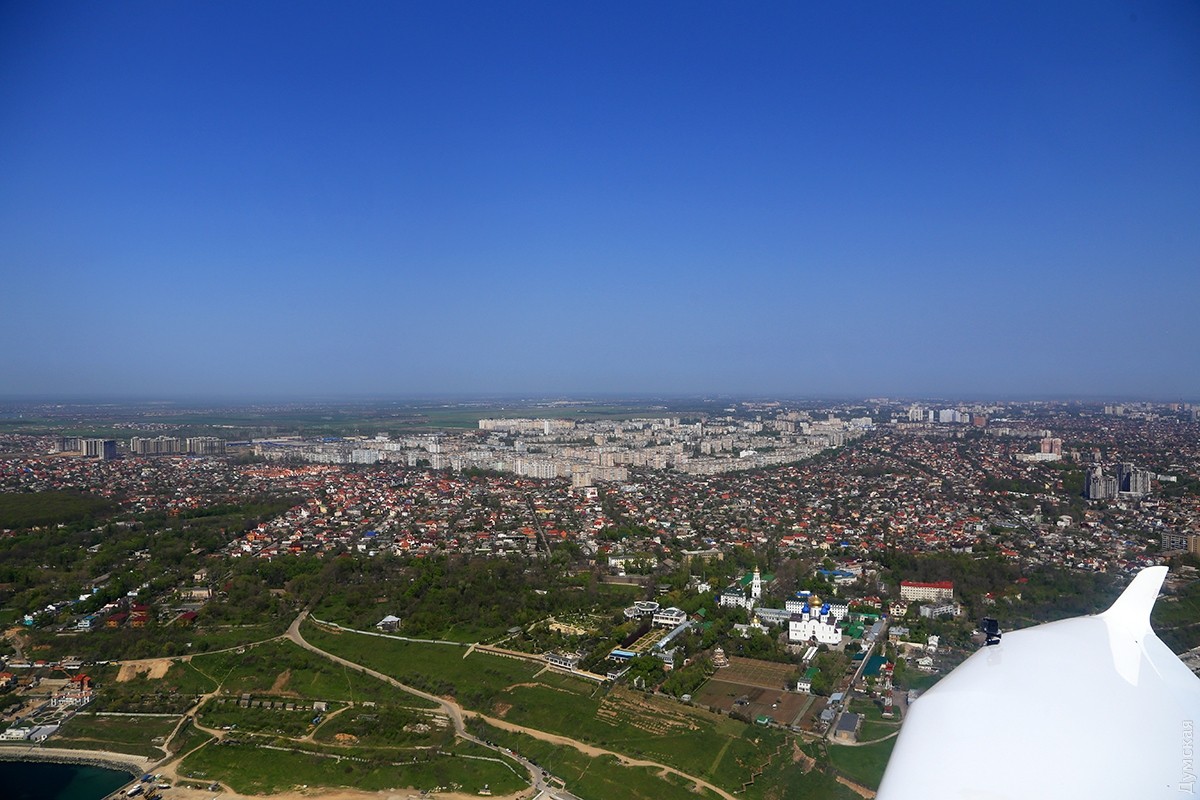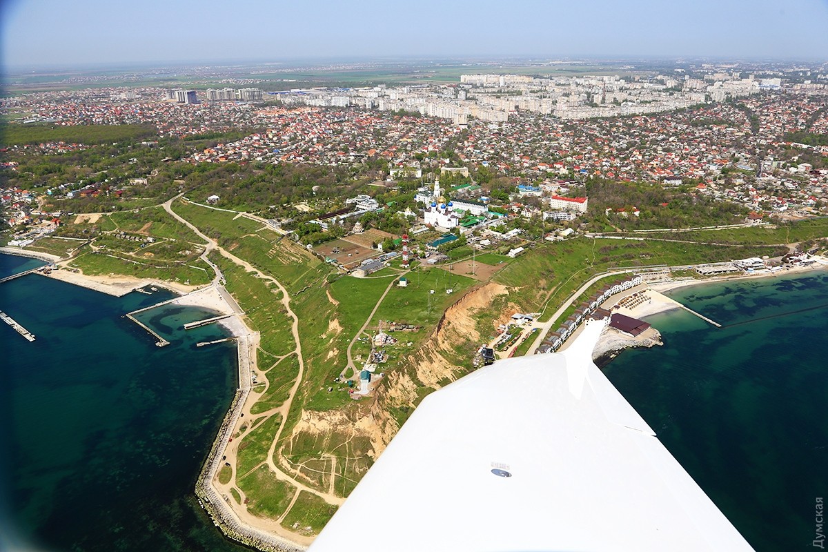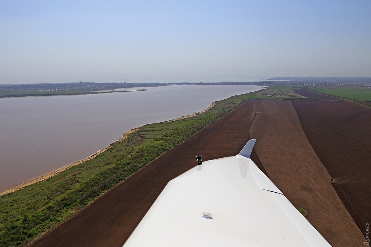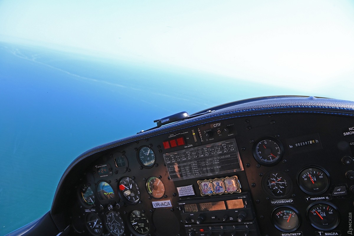 Одесса под крылом «Акулы»: как частная авиация пограничникам, экологам и спасателям помогаетОчерк корреспондента «Думской» Сергея Смоленцева, который полетал над Одессой вместе с добровольными помощниками пограничников и ГСЧС. Пилот внимательно смотрит на приборную доску и прислушивается к работе двигателя. Еще пара секунд для прогрева, после чего он энергично двигает РУД (ручку управления двигателем) вперед на взлетный режим. Децибелы бьют по ушам, летчик нагружает винт, отпускает тормоза, и самолет, слегка качнувшись, стремительно набирает скорость. Перегрузка вдавливает в кресло, пилот берет ручку на себя, еще секунда, и мы в воздухе. Легкий поршневой двухместный самолетик Aquila A210, бортовой UR-ACA, отправляется в небольшой утренний облет побережья с пригородного аэродрома Гидропорт, где базируется легкомоторная авиация одесского аэроклуба. В левом кресле — известный одесский пилот Вадим Громов. Погода сегодня – миллион на миллион, правда, где-то на горизонте все же видна небольшая дымка, но она ни разу не мешает, все видно, как на ладони. На носу самолетика нанесена шутливая аэрография — зубастая пасть нешуточного морского хищника, русское название которого созвучно названию фирмы–производителя. И хотя «аквила» переводится с латыни как «орел», летчики предпочитают называть эти машины «акулами». Так веселее и загадочнее… Доклад диспетчеру, ответные пожелания, и «Акула» после крутого правого виража оказывается над Куяльницким лиманом. Над границей земли и воды всегда немного потряхивает. Проходя на небольшой высоте через слои теплого и холодного воздуха, самолет из-за разности давлений попадает в воздушные ямы. Тяжелые лайнеры меньше подвержены такой тряске, а легкую «Акулу» бросает не только по высоте, но и по курсу движения. В общем, ничего страшного, к этому быстро привыкаешь, и через десять минут тряска воспринимается как неотъемлемая часть путешествия – так даже интереснее. Движемся над лиманом в сторону Одесского залива. С высоты 100 метров по цвету воды отчетливо видна разница глубин Куяльницкого и Хаджибейского лиманов. Желтовато-коричневая жижа под нами говорит о том, что Куяльник не глубже двух метров (а то и мельче), тогда как синяя в Хаджибее свидетельствует о намного больших отметках. Мы летаем не только развлечения ради. Летчики Всеукраинской общественной организации частных пилотов и владельцев воздушных судов (АОПА Украина) на волонтерских началах помогают спасателям, полиции и Государственной пограничной службе: полеты Aquila и другой подобной техники стоят на порядок дешевле, чем пограничных «Даймондов» и вертолетов. В хорошую погоду с высоты 1000 футов (около 330 метров) можно увидеть большие объекты – суда и здания на расстоянии 25-30 км. С помощью приборов пилоты дают точное целеуказание аварийным, техническим и оперативным службам. Вадим Громов рассказывает, что таким образом были спасены десятки людей, попавших в беду. Спасать удавалось тонущие яхты, катера и лодки с рыбаками и даже пляжников, унесенных ветром на надувных матрасах. Маленький, тихий, незаметный самолетик может вплотную подкрасться к морским судам, занимающимся контрабандой или незаконным ловом рыбы, и мгновенно передать эту информацию диспетчеру, который тут же поставит в известность заинтересованные службы. Летчики малой авиаци