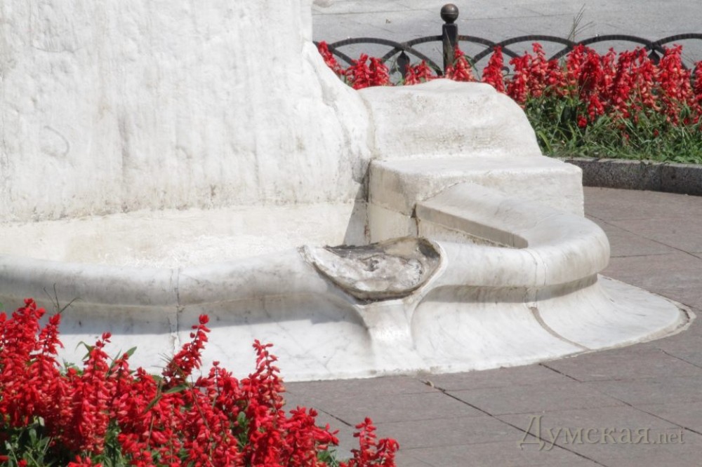 Сразу два одесских фонтана пострадали от рук вандалов в течение вчерашнего дня и ночи. Об этом «Думской» сообщил директор КП «Сервисный центр» Сергей Болдырев. Так, по его словам, в среду неизвестные снова повредили фонтан-памятник монументального искусства «Дети и лягушка» на Театральной площади, отломав мраморную фигурку земноводного. «После аналогичного случая в прошлом году лягушку укрепили металлическими стержнями, там кран нужен, чтобы ее оторвать, — говорит Болдырев. — Ума не приложу, как им это удалось!»