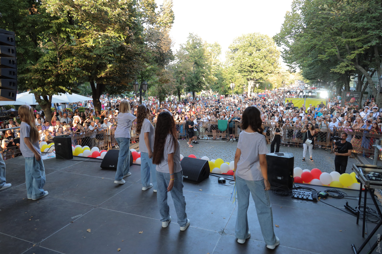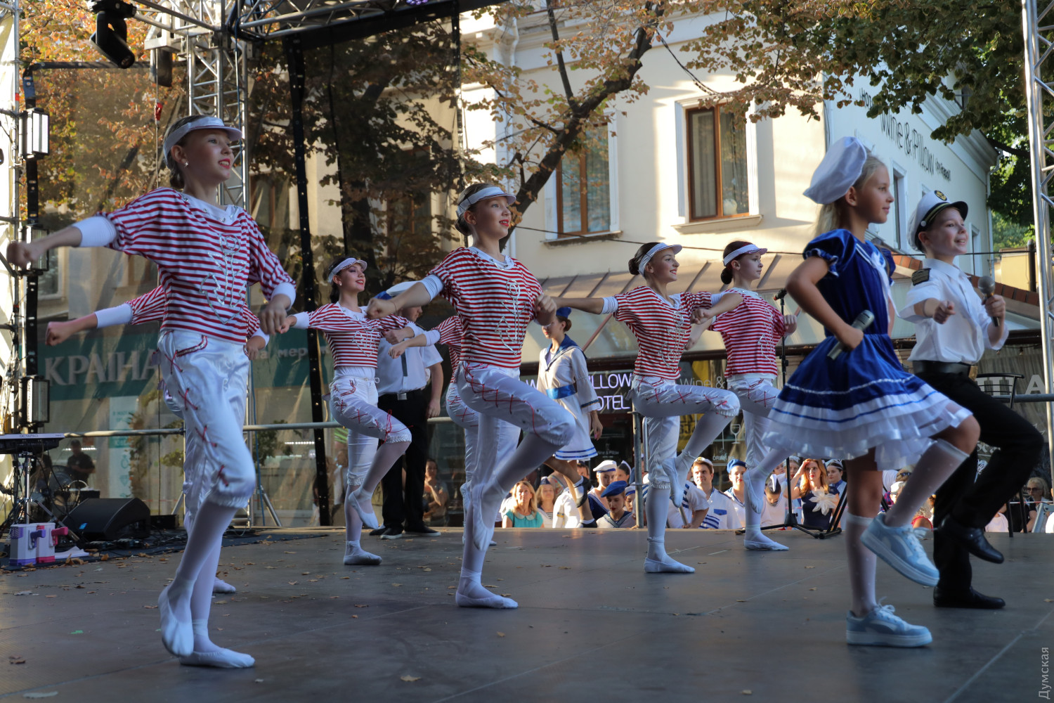 Концертом на Дерибасівській сьогодні ввечері завершується святкування Дня міста в Одесі. Як повідомляє кореспондент «Думської», видовищний захід стартував о 18:00 та одразу привернув увагу відпочивальників на центральній вулиці міста. Першими виступили вихованці Одеського міського центру хореографічного мистецтва з танцювальним попурі «Рідна Одеса». На сцені один за одним свої таланти показують дитячі та юнацькі танцювальні та вокальні колективи. За даними редакції, концерт триватиме понад дві години, а хедлайнером стане популярний український колектив Kalush Orchestra. СМЕРТЬ РОСІЙСЬКИМ ОКУПАНТАМ! Помітили помилку? Виділяйте слова з помилкою та натискайте control-enter |