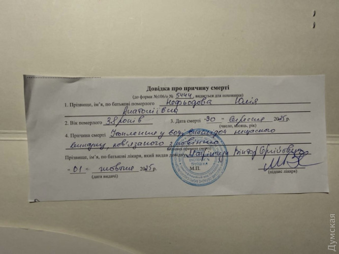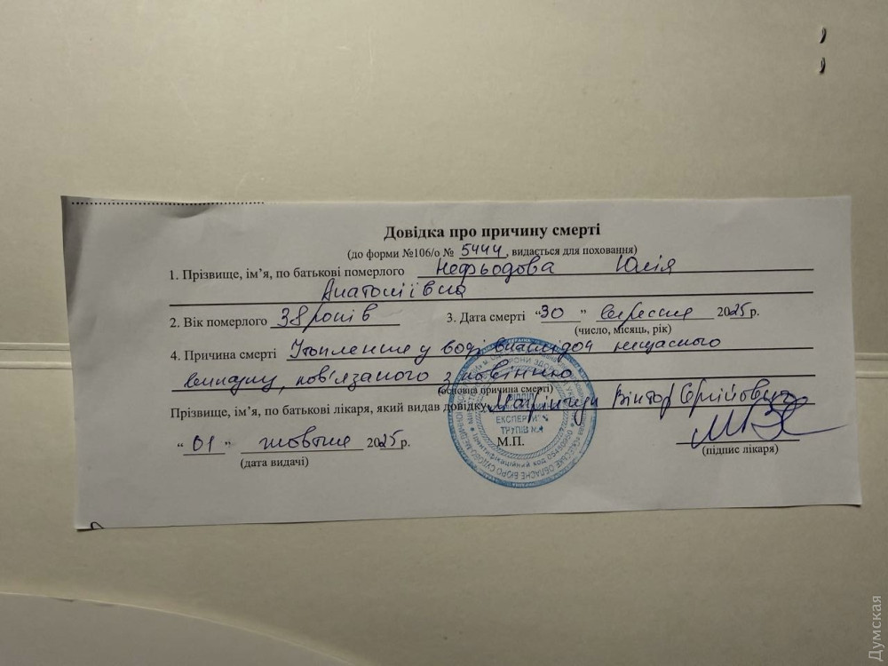 Жертва повені: одесит чотири години шукав тіло дружини, яке віднесло потокомЗ редакцією зв'язався чоловік однієї із жертв повені 30 вересня в Одесі. За словами Володимира Нефьодова, його дружину Юлію змило потоком води на вулиці Балківській. «Вона залишила машину на розі зі спуском Степана Олійника, бо далі проїхати не могла, — розповів Володимир. — Пройшла 20 метрів, і її змило. Ми спілкувалися за дві хвилини до її смерті». Чоловік самостійно шукав дружину чотири години і знайшов її тіло за 150 метрів нижче — воно зачепилося за стовп. «Спочатку я був із сином, але потім відвіз його додому, і добре, що він не був зі мною, коли я знайшов Юлю, — згадує одесит. — У поліції мені сказали: пишіть заяву, завтра будемо шукати. Жодного поліцейського не було. Я підійшов — вона лежить біля стовпа. Я дорослий чоловік, багато чого бачив, але я кричу другий день поспіль. Коли я знайшов її, на ній живого місця не було…».