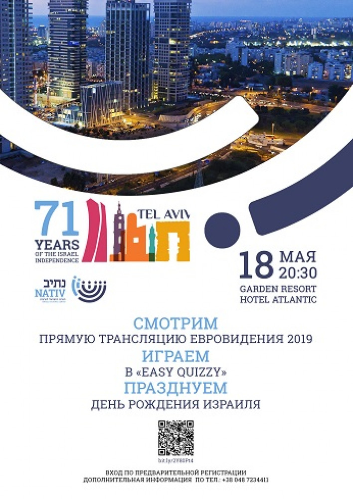 Одесситам предлагают отметить дни рождения Израиля и Тель-Авива (на правах рекламы)18 мая Израильский культурный центр «Натив» проведет большой праздник «Смотрим. Играем. Празднуем» сразу по трем поводам. Во-первых, государство Израиль отмечает свой 71-й день рождения, а прекрасному городу Тель-Авив исполнилось 110 лет. Кроме того, город-именинник в этом году принимает у себя ежегодный песенный конкурс «Евровидение». «Будем смотреть прямую трансляцию «Евровидения-2019» из Тель-Авива. В прошлом году Израиль взял первое место в песенном конкурсе. Кто победит в этот раз? Сделаем ставки вместе!» — призывают организаторы. А пока лучшие исполнители Европы будут состязаться в музыкальном таланте, гости праздника посоревнуются интеллектуально — известный шоумен Игорь Окс проведет командную шоу-игру «EassyQuizzy». И конечно, празднование не обойдется без угощений, напитков и подарков. Мероприятие пройдет по адресу: ул.Генуэзская, 24А (отель «Атлантик»). Начало — в 20:30 Вход– свободный по предварительной регистрации (с собой надо иметь паспорт). СМЕРТЬ РОСІЙСЬКИМ ОКУПАНТАМ! Помітили помилку? Виділяйте слова з помилкою та натискайте control-enter |