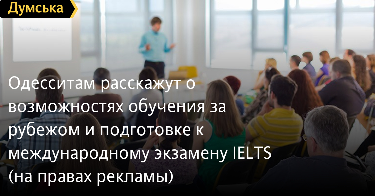 Одесситам расскажут о возможностях обучения за рубежом и подготовке к международному экзамену IELTS (на правах рекламы)По случаю открытия регионального офиса в Одессе компания Students International, основанная в 1992 году, приглашает на уникальное образовательное мероприятие всех желающих учиться за рубежом. Встреча-презентация пройдет 3 декабря. Участникам мероприятия посоветуют, как выбрать страну и учебное заведение для учебы, расскажут о карьерных возможностях, а также о языковых и каникулярных программах для школьников и студентов. СМЕРТЬ РОССИЙСКИМ ОККУПАНТАМ! Заметили ошибку? Выделяйте слова с ошибкой и нажимайте control-enter |