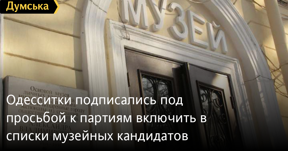 Одесситки подписались под просьбой к партиям включить в списки «музейных» кандидатовРяд представителей музеев Украины обнародовал открытое письмо к партиям – участницам ближайших парламентских выборов, призвав включить в списки «музейного» кандидата. В составе инициативной группы – 23 человека, в том числе – четыре одесситки. Это директор историко-краеведческого музея Вера Солодова и представительницы муниципального музея личных коллекций имени А.В. Блещунова: руководитель Светлана Остапова, ее заместитель по научной работе Зоя Шинчук и главный хранитель фондов Елена Илясова. В письме, в частности, говорится, что поводом для обращения стала «чрезвычайная ситуация в музейной отрасли Украины». Перечислив проблемы музеев, авторы утверждают, что причина – в «отсутствии целостной национальной музейной политики, определяющей стратегию развития музейного дела и формулирующей конкретные задачи». ![]() «За все шесть созывов в составе Верховной Рады не было ни одного депутата, которого можно было бы назвать представителем интересов музейной отрасли и который бы системно занимался законотворчеством по музейному делу и охране памятников», — цитирует инициативную группу агентство «Вікна-Одеса ». Авторы признают, что «музеи не должны участвовать в политической борьбе», но «на данном этапе мы видим необходимость, чтобы как минимум одна из партий исполнила роль лифта, который позволит выбрать в парламент представителя интересов музеев». Фамилию такого кандидата инициаторы не называют, обещая, что он будет избран на «отраслевых праймериз». СМЕРТЬ РОССИЙСКИМ ОККУПАНТАМ! Заметили ошибку? Выделяйте слова с ошибкой и нажимайте control-enter |
