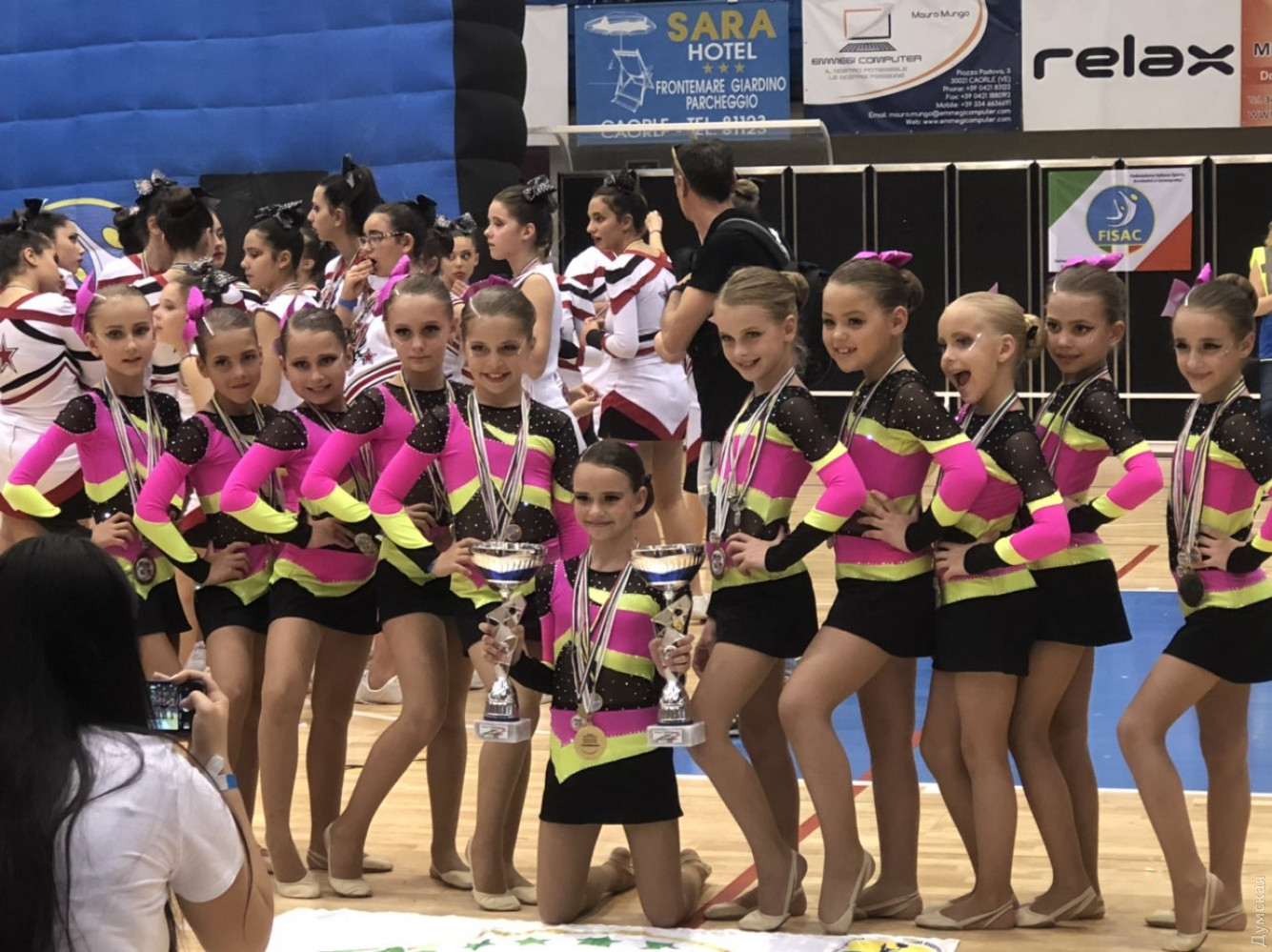 Одесситки завоевали медали разного достоинства на открытом чемпионате Италии по черлидингуВосемь комплектов медалей разного достоинства завоевали одесские спортсменки на открытом первенстве Италии по черлидингу, которое проходило 5-6 мая в городе Каорле (провинция Венеция). Так, по информации региональной федерации этого вида спорта, два командных золота получили девочки (до 12 лет) из CheerCity Peewee Team. Они заняли первые места во фристайле и джазе, сообщили в региональной федерации черлидинга. Кроме того, медали завоевали еще шесть дуэтов одесских черлидеров: джаз-дуэт (взрослые) Юлия Шумигора/Мария Хрущева — 1 место; фристайл-дуэт (взрослые) Юлия Шумигора/Мария Хрущева — 1 место; джаз-дуэт (дети) София Семенец/Кира Меженная — 1 место; фристайл-дуэт (дети) Ирина Король/София Стратиевская — 1 место; фристайл-дуэт (дети) Виктория Ищенко/Дарья Семенова — 2 место; фристайл-дуэт (дети) Ксения Иванова/Катарина Замковская — 3 место; Таким образом, CheerCity Peewee Team привез в Одессу из Италии шесть комплектов золотых наград, один — серебряных и один — бронзовых. Для выступления во фристайле сборную клуба готовила тренер Светлана Смолец, для выступления в джазе — Татьяна Минкина. Еще два тренера клуба — Ольга Самохвалова и Елизавета Тамоян — занимались подготовкой дуэтов. Фото CheerCity Peewee Team СМЕРТЬ РОСІЙСЬКИМ ОКУПАНТАМ! Помітили помилку? Виділяйте слова з помилкою та натискайте control-enter |