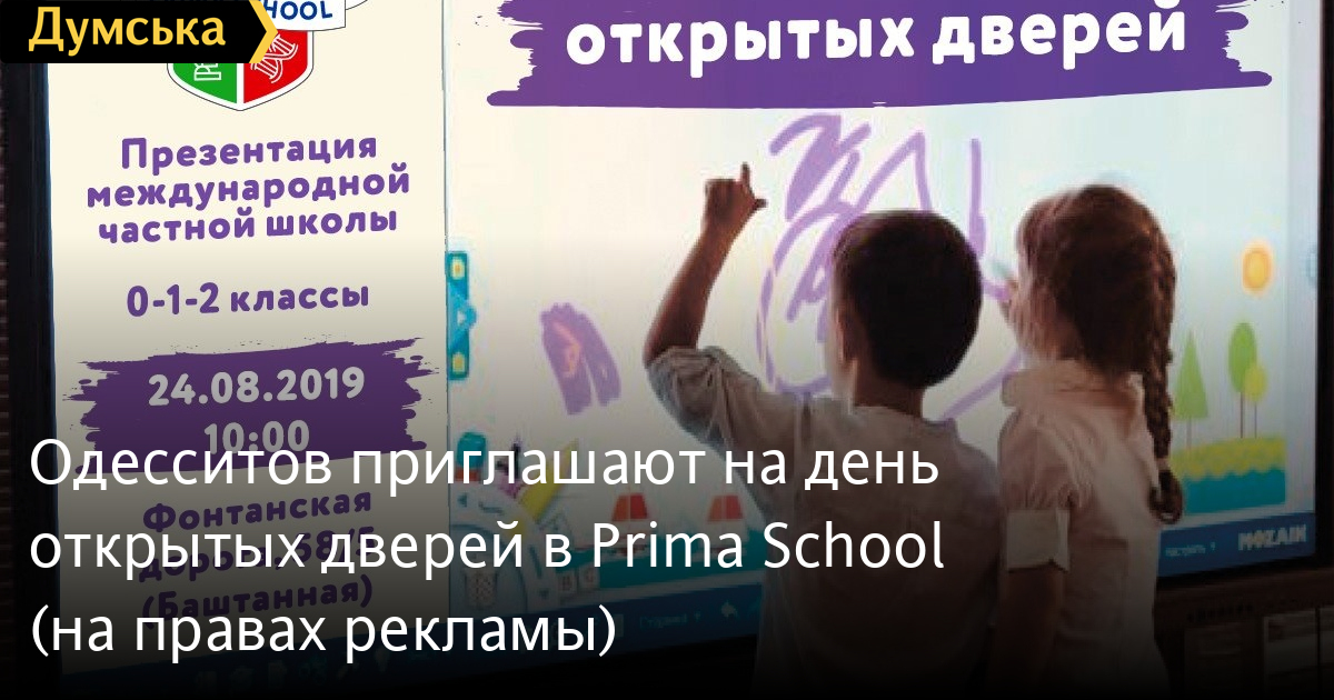 Одесситов приглашают на день открытых дверей в Prima School (на правах рекламы)В частной школе Prima School, что на 10 станции Большого Фонтана открыт набор учащихся 1-2 классов на 2019/2020 учебный год. 24 августа школа приглашает детей и родителей на день открытых дверей. Prima School это: • лицензированная школа с высокой планкой качества образования и организации учебного процесса; • мощная международная программа, признанная в 160 странах мира; • поддержка украинской программы «Новая украинская школа» и аттестация учеников по государственным стандартам образования; • двуязычное обучение и среда (английский и украинский языки), мультинациональные классы; • современные интерактивные учебные материалы и электронные учебники; • сертифицированные педагоги со свободными английским и украинским языками; • сбалансированное питание с учетом (при необходимости) культурных и религиозных традиций; • организация питания от компании «Реста» (Савелий Либкин). «Если вы сомневаетесь, что выбрали именно ту школу, в которой ваш ребенок будет счастлив, его интересы учтены и он по-настоящему полюбит процесс обучения, то мы с радостью ждем вас! Приходите познакомиться с нашей замечательной командой педагогов!» — приглашают организаторы. Подробную информацию можно получить на сайте prima-school.com.ua или по телефону +38 050 395 09 40. СМЕРТЬ РОССИЙСКИМ ОККУПАНТАМ! Заметили ошибку? Выделяйте слова с ошибкой и нажимайте control-enter |