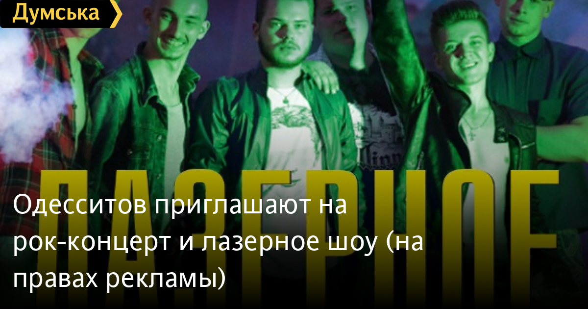 20 июня и 4 июля в 21:15 на площади ТРЦ « Аркадия Сити « состоится уникальное лазерное рок-шоу от группы Be My Guest. Be My Guest -восходящие рок-звезды из Одессы. Группа начала свое существование в июле 2011 года. В декабре 2014 года Be My Guest записали свой первый сингл «Больше нет сил», а вскоре после выпустили клип на эту песню. Сейчас коллектив работает над записью своего дебютного альбома. «Это мероприятие — подарок телекоммуникационных компаний TENET и Infomir жителям и гостям города Одессы. Приходите! Будет жарко! Вход свободный», — рассказали организаторы шоу. СМЕРТЬ РОСІЙСЬКИМ ОКУПАНТАМ! Помітили помилку? Виділяйте слова з помилкою та натискайте control-enter |