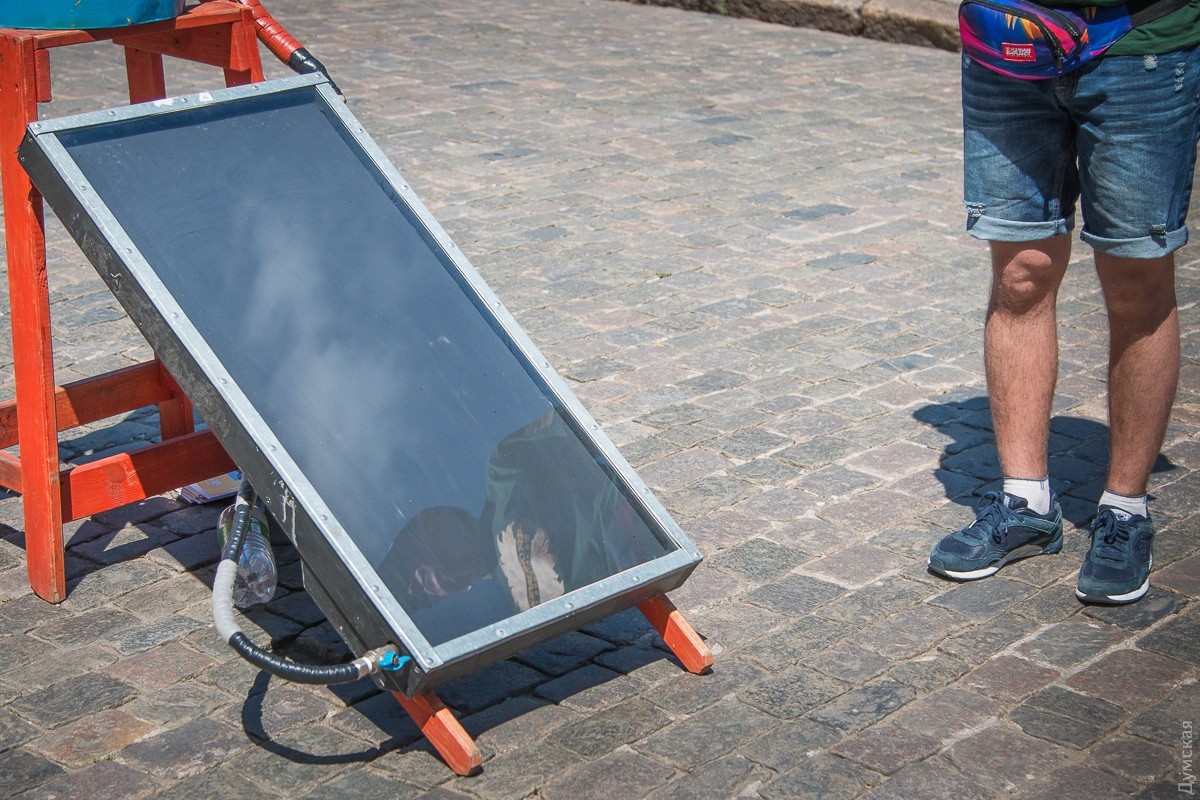 На главной улице города одесситам показали, как экономить энергию в быту и сделать свой город зеленее. В рамках всеукраинского тура активисты на простых примерах продемонстрировали, что этого можно достичь. На Дерибасовской варили кофе «на солнечной энергии», крутили педали велогенераторов и заряжали телефоны от солнечных панелей. Участник акции Олег Гетун рассказывает: если небо будет безоблачным, абсолютно разряженным телефоном можно будет пользоваться уже через три часа. Источник энергии – самодельное устройство на основе небольших солнечных фотоэлементов. «Грубо говоря, чтобы самостоятельно изготовить такую панель, вам понадобиться менее 300 гривен», — говорит он. Сами фотоэлементы Олег заказал по Интернету из Китая. С помощью простого паяльника соединил их с аккумулятором и автоприкуривателем с USB разъемом. Есть здесь и солнечный коллектор – устройство для подогрева воды. Несколько лет назад ребята сами собрали его из подручных материалов. Все это имеется в любом частном доме или на даче, настаивает другой активист, Дмитрий. В 2012-м на все про все потратили всего 3 тысячи гривен. Принцип действия простой – резервуар с водой соединен с нагревателем. В плоской емкости — тонкие шланги. Вода в них нагревается и поднимается наверх – в бак. Холодная, наоборот, спускается в те же шланги и опять нагревается. И так без конца. Это физика. Главная цель тура, говорят его организаторы – экономия энергоносителей и, соответственно, охрана окружающей среды. Всеукраинский тур пройдет по шести городам страны. Одесса – третья. Автор — Алия Замчинская, фото Александра Гиманова СМЕРТЬ РОСІЙСЬКИМ ОКУПАНТАМ! Помітили помилку? Виділяйте слова з помилкою та натискайте control-enter |