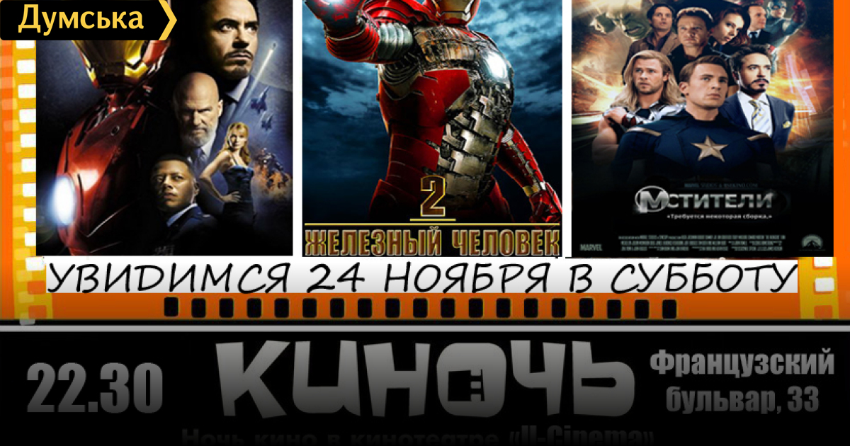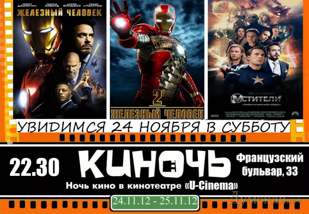 Ночь фильмов с героями комиксов в главных ролях пройдет на выходных в Одессе. Мероприятие проводится пабликом «Одесса как она есть». Как сообщают организаторы, в этот раз зрители увидят фильмы по сюжетам Марвел: «Железный человек, «Железный человек – 2», «Мстители». Цена билета составляет 60 гривен. Начало киноночи – 24 ноября в субботу в 22:30. Забронировать билет можно здесь. Фильмы демонстрируются на русском языке. На правах рекламы СМЕРТЬ РОСІЙСЬКИМ ОКУПАНТАМ! Помітили помилку? Виділяйте слова з помилкою та натискайте control-enter |