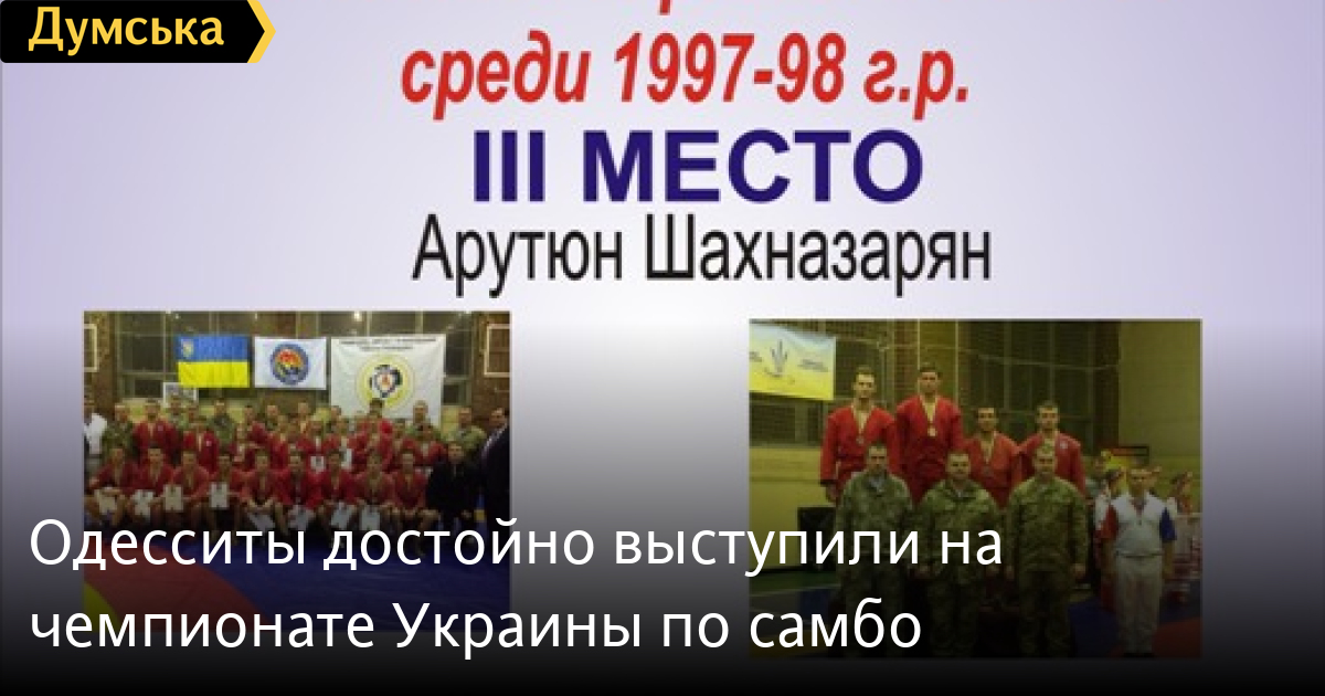 Воспитанники одесской спортшколы заняли призовые места на чемпионате Украины по самбо среди юношей, который прошел с 27 января по 2 февраля в Киеве. В соревнованиях приняли участие 400 спортсменов в возрасте от 17 до 20 лет, сообщила пресс-служба горсовета. Одессу представляли воспитанники коммунального внешкольного учебного заведения „Детско-юношеская спортивная школа №4». Александр Гаринов занял третье место среди спортсменов 19-20 лет. Арутюн Шахназарян завоевал «бронзу» среди спортсменов в возрасте 17-18 лет. СМЕРТЬ РОССИЙСКИМ ОККУПАНТАМ! Заметили ошибку? Выделяйте слова с ошибкой и нажимайте control-enter |