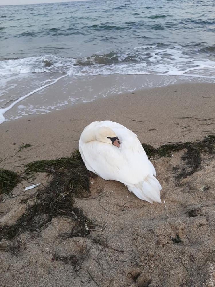 Истощенного и ослабленного лебедя обнаружили одесситы в районе пляжа «Отрада».
