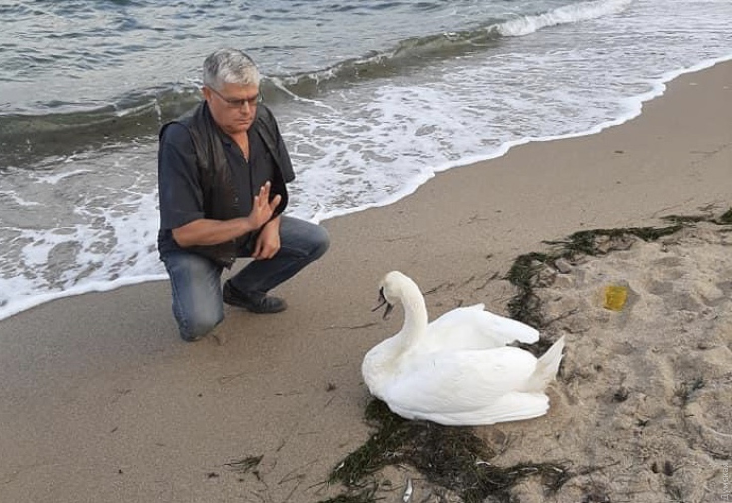 Одесситы нашли истощенного лебедя на пляже: птицу забрал на лечение зоопарк