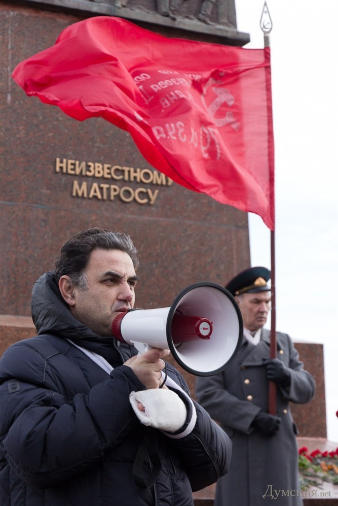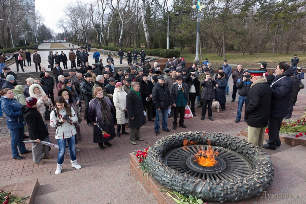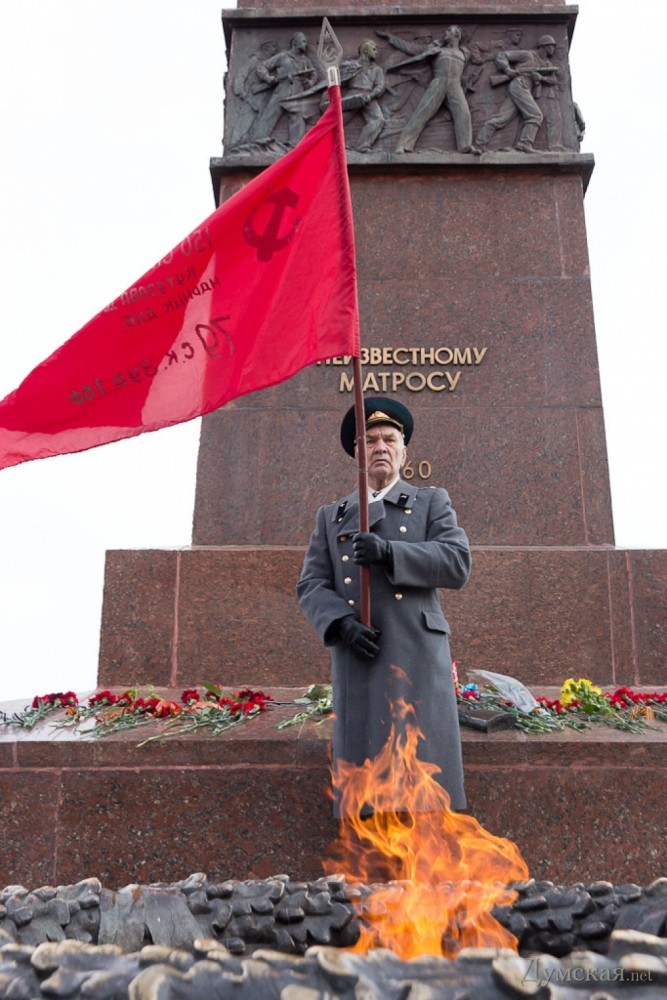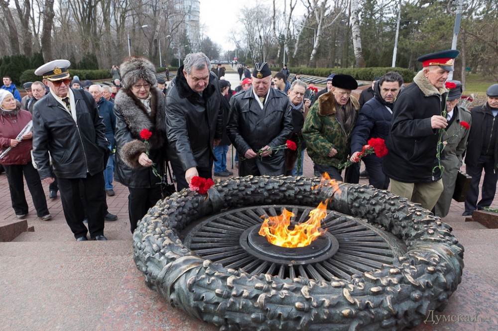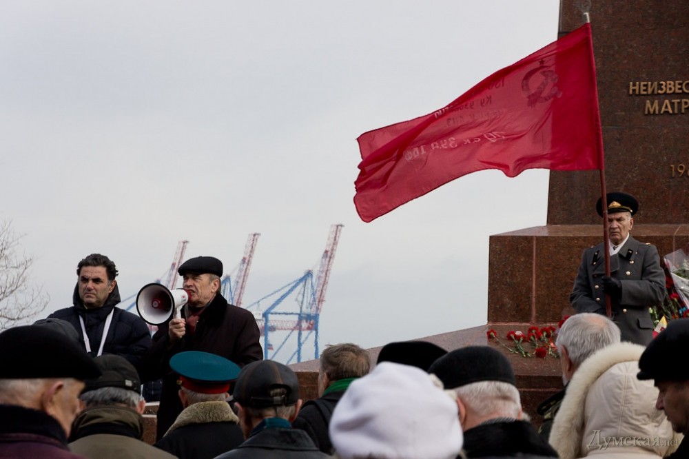 Одесские коммунисты-антимайдановцы и Союз советских офицеров отметили сегодня День Советской армии и Военно-морского флота, возложив цветы к памятнику Неизвестному матросу в парке Шевченко.