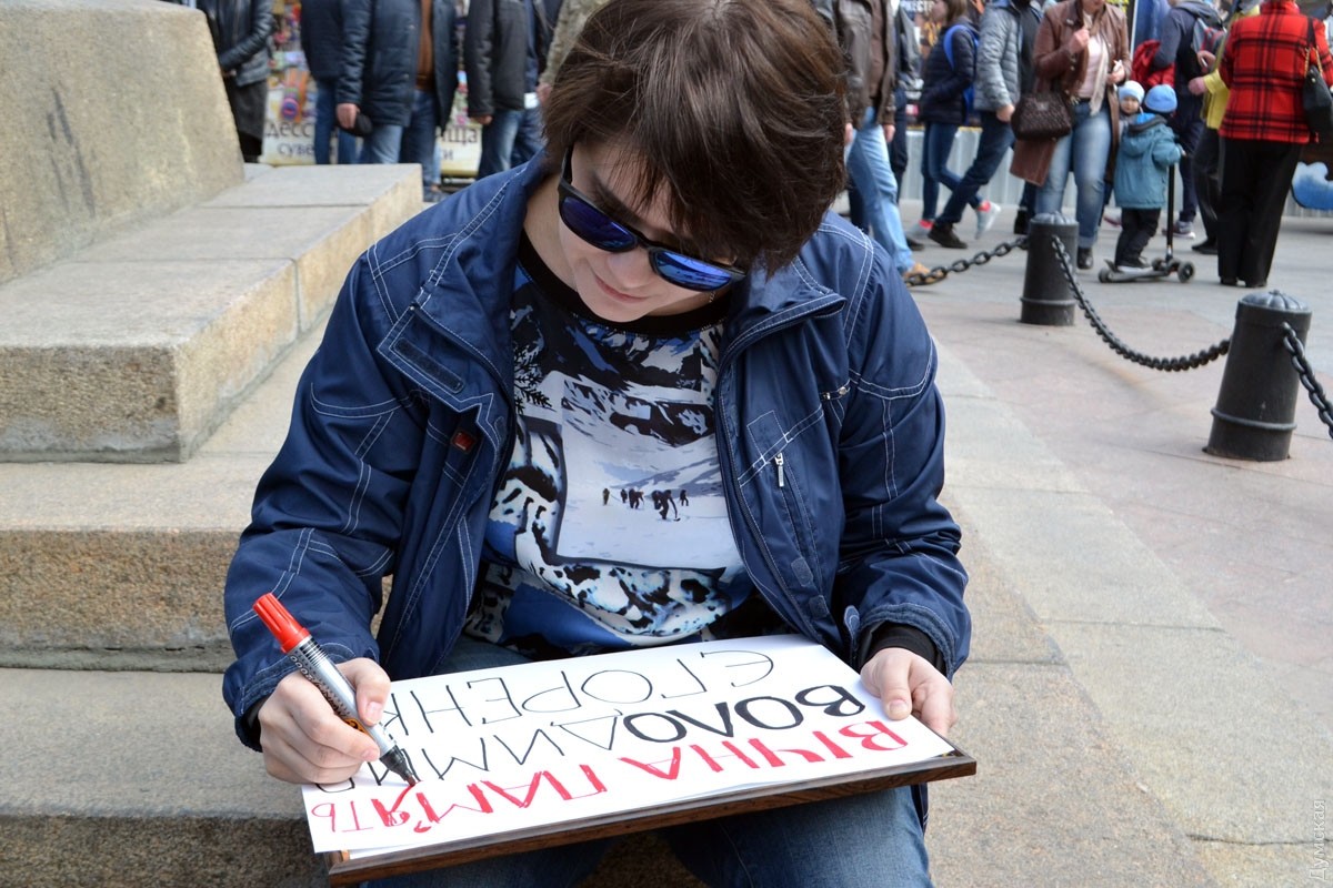 По словам одного из организаторов акции Виктора Погодина, сегодняшняя акция не имеет никакой политической подоплеки. Правда, в это верится с трудом: некоторые плакаты, которые держали участники, были вполне себе политическими. Например, на одном упоминался одесский мэр. Священники разных конфессий провели молебен, после чего собравшиеся исполнили гимн Украины и разошлись. Вечная память погибшим за свободу и независимость Родины. Фото — Андрей Колисниченко