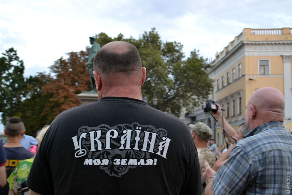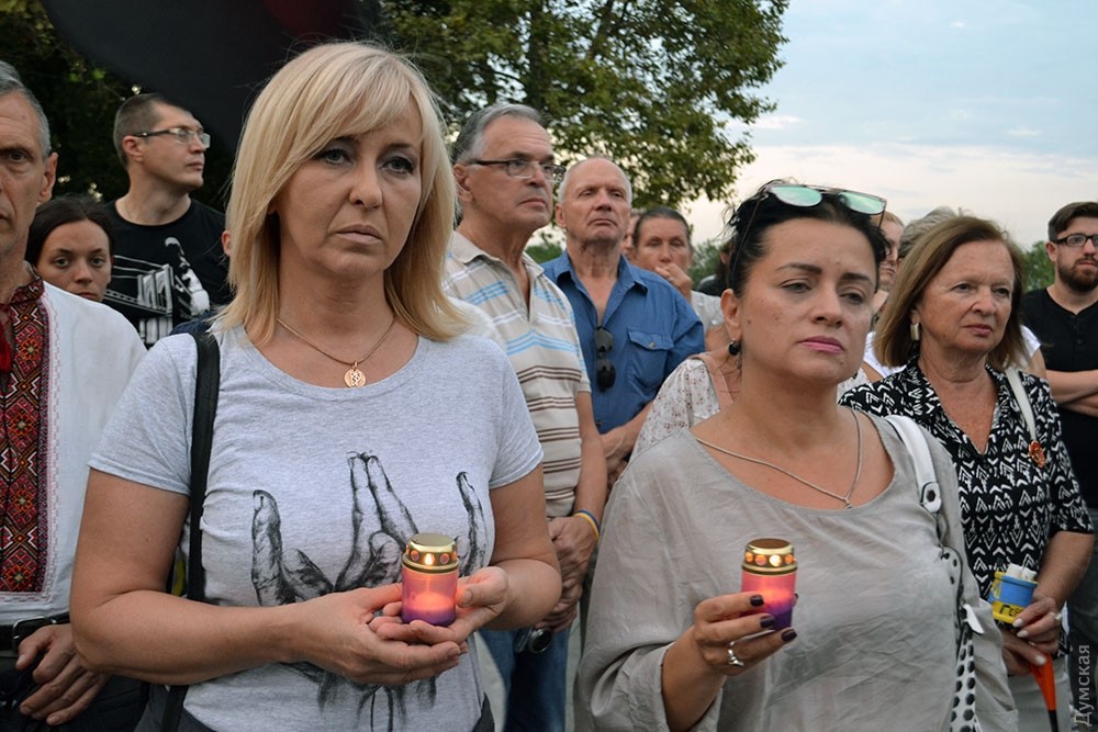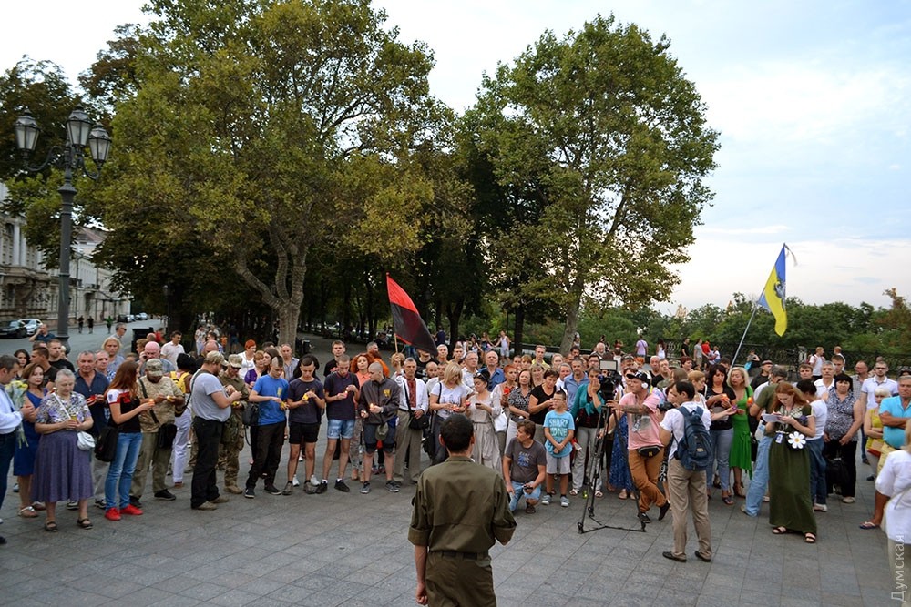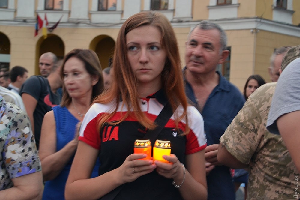 В ходе акции одесситы помолились за упокой погибших украинских солдат и спели Гимн Украины.