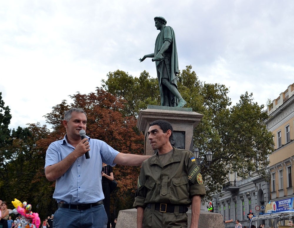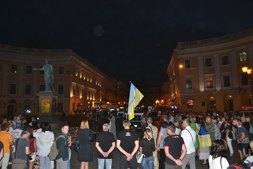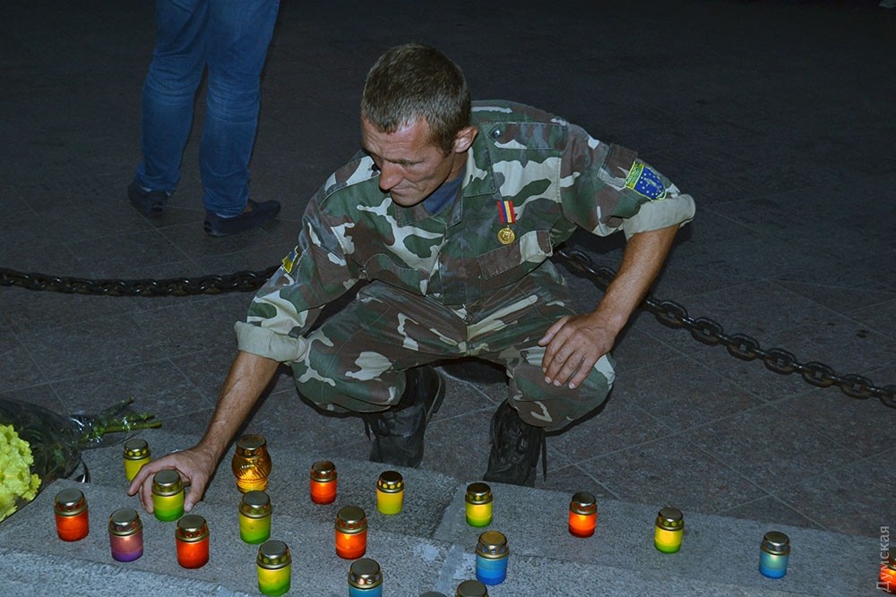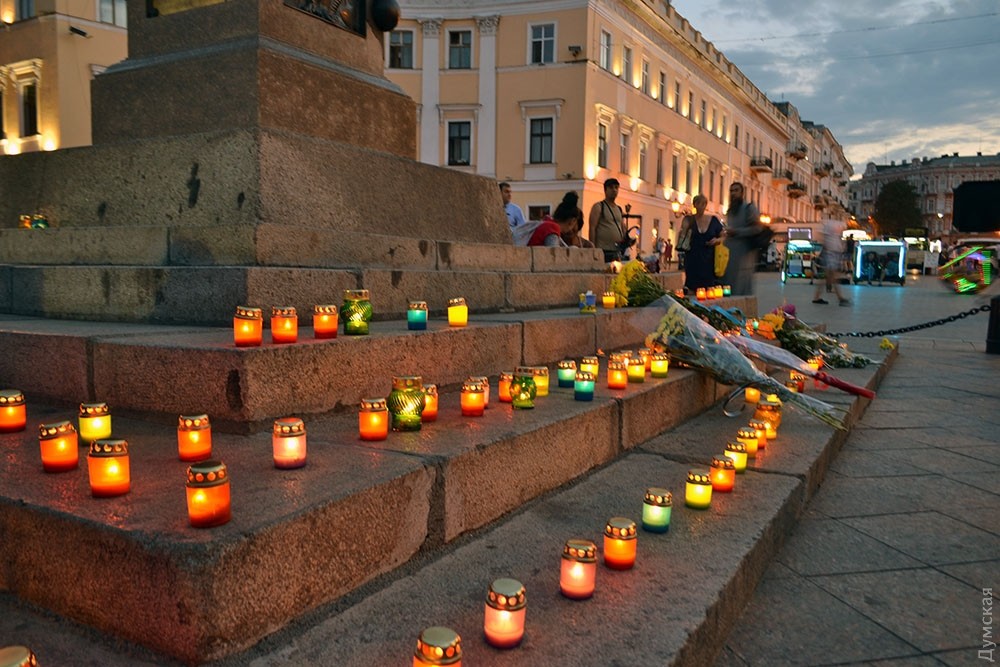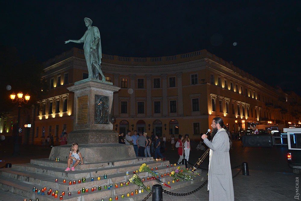 Возле памятника Дюку около двух сотен одесситов зажгли лампадки и помолились за погибших под Иловайском.