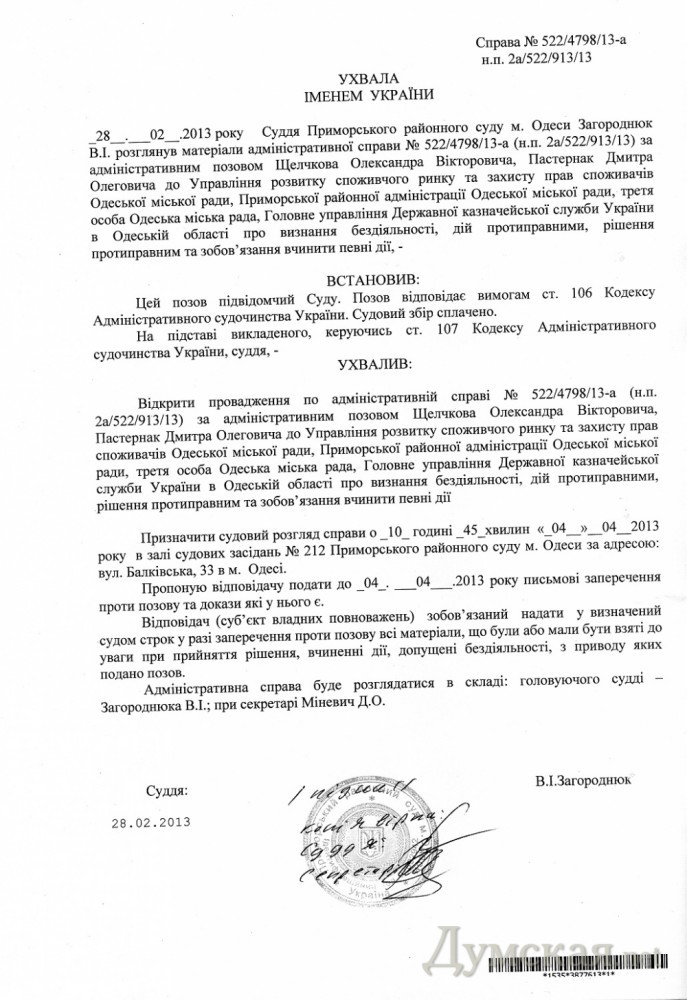 Иск принят к рассмотрению. Первое заседание состоится 4 апреля 2013-го года, рассказали «Думской» горожане.