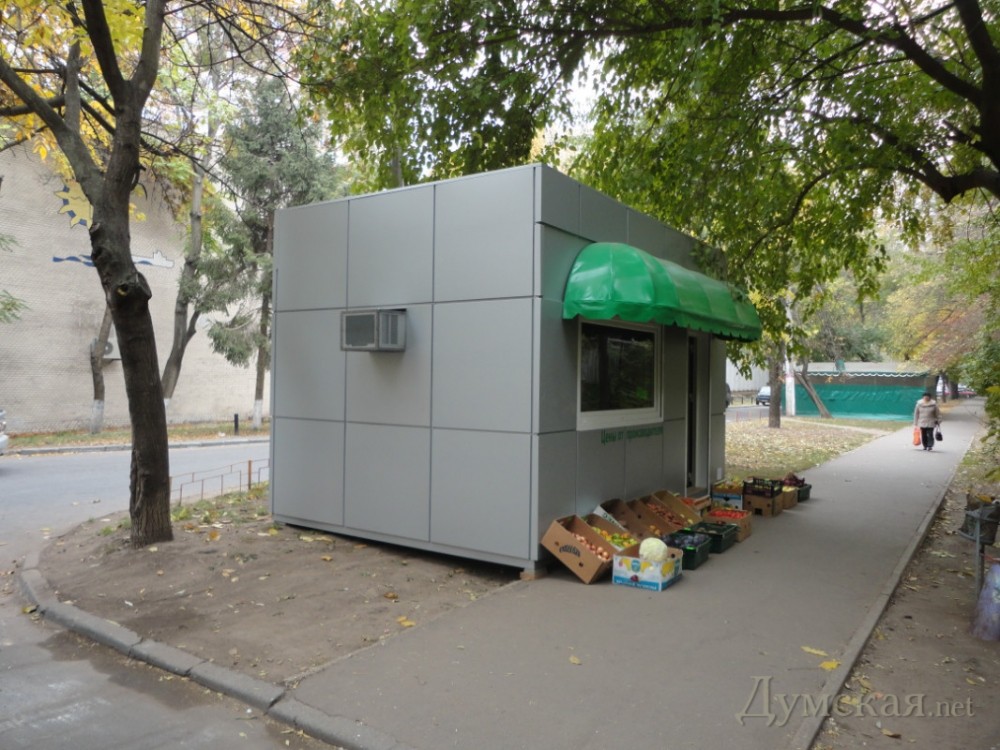 По их словам, МАФизация их придомовой территории началась несколько лет назад, как всегда, с одной будки. Потом они начали расти, как грибы после дождя — в основном ночью. Сейчас в этом районе уже функционирует настоящий стихийный рынок, где можно купить все или почти все – от пива до овощей и мясных продуктов. Часть базара разместилась прямо на газоне под стенами жилого дома.