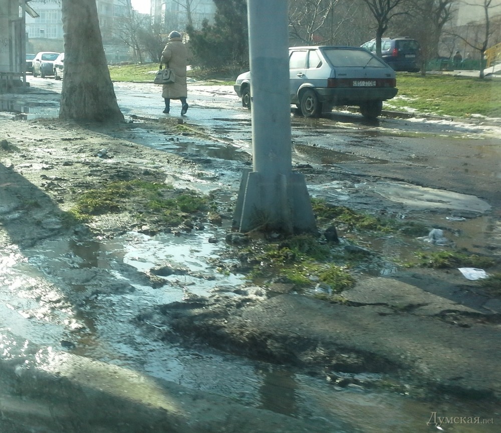 Вот уже более трех месяцев вода из городского водопровода увлажняет перекресток Балковской улицы и Западного переулка. Как сообщают наши читатели, вода с достаточно хорошим напором бьет из-под рекламного щита. «Я прохожу там ежедневно, и могу сказать, что вода течет в никуда и днем, и ночью. Может, власти, наконец, обратят на это внимание и устранят течь», — надеется одессит Александр.