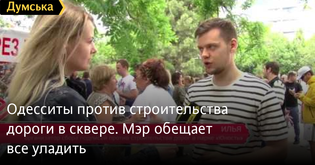 Управление дорожного хозяйства планирует проложить дорогу в курортной зоне на восьмой станции Большого Фонтана. На выходные в парке Юность собралось свыше сотни одесситов, которые выступили против застройки сквера. За считанные часы активисты собрали сотни подписей под обращением к мэру с требованием прокомментировать ситуацию. СМЕРТЬ РОССИЙСКИМ ОККУПАНТАМ! Заметили ошибку? Выделяйте слова с ошибкой и нажимайте control-enter Думская ТВ. Сюжеты: