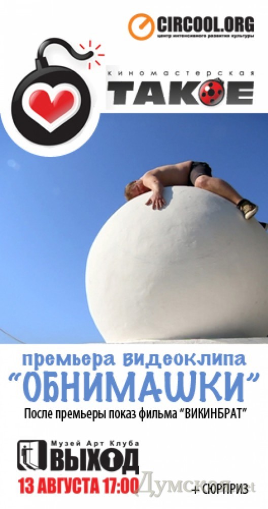 Киномастерская «ТАКОЕ» www.takoe.od.ua при поддержке Центра Интенсивного Развития Культуры «ЦИРКуль» представит видеоролик «Обнимашки» — добрую и уютную, совершенно некоммерческую и аполитичную «рекламу» нашего города. После показа состоится встреча с творческим коллективом киномастерской, который поделится целями создания видеоролика и представит короткометражный фильм «Викинбрат». Время показа: 17:00, суббота 13 августа. СМЕРТЬ РОСІЙСЬКИМ ОКУПАНТАМ! Помітили помилку? Виділяйте слова з помилкою та натискайте control-enter |