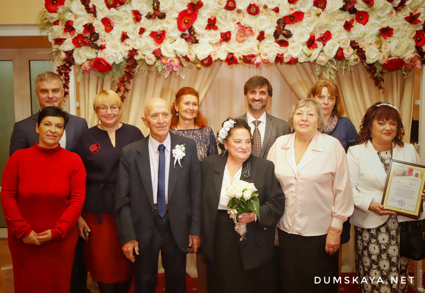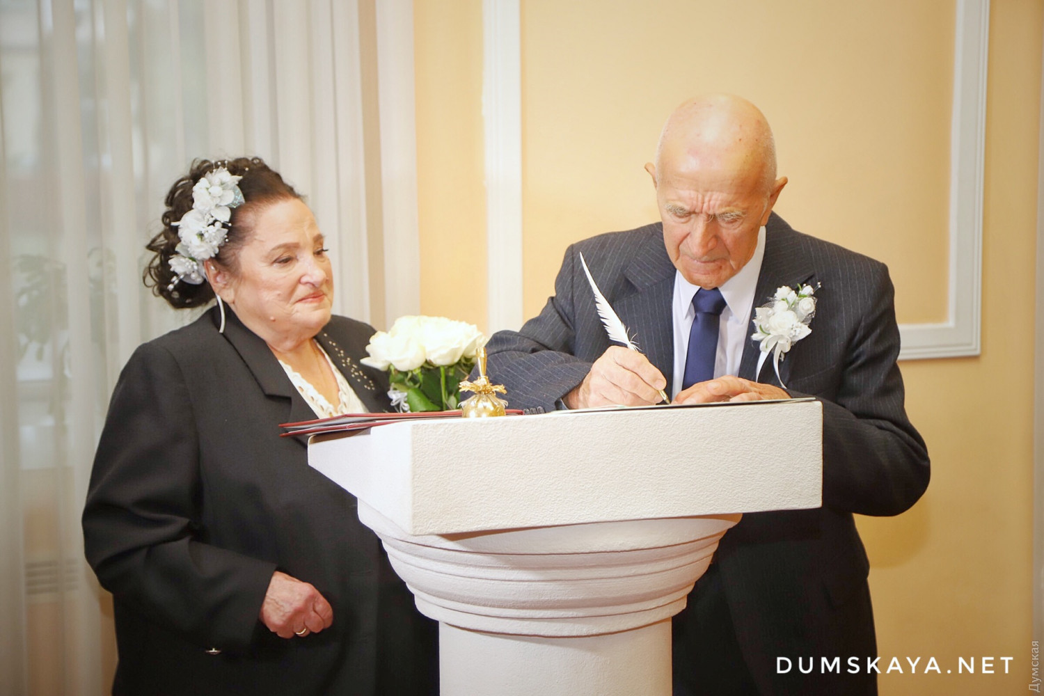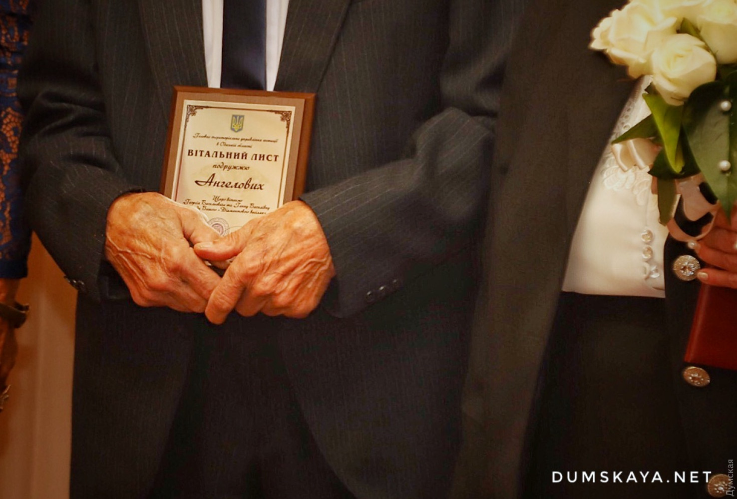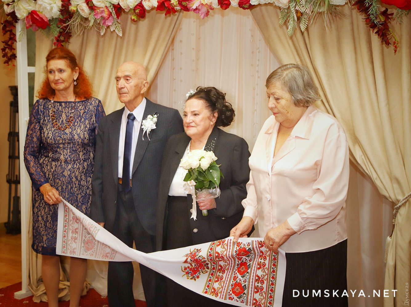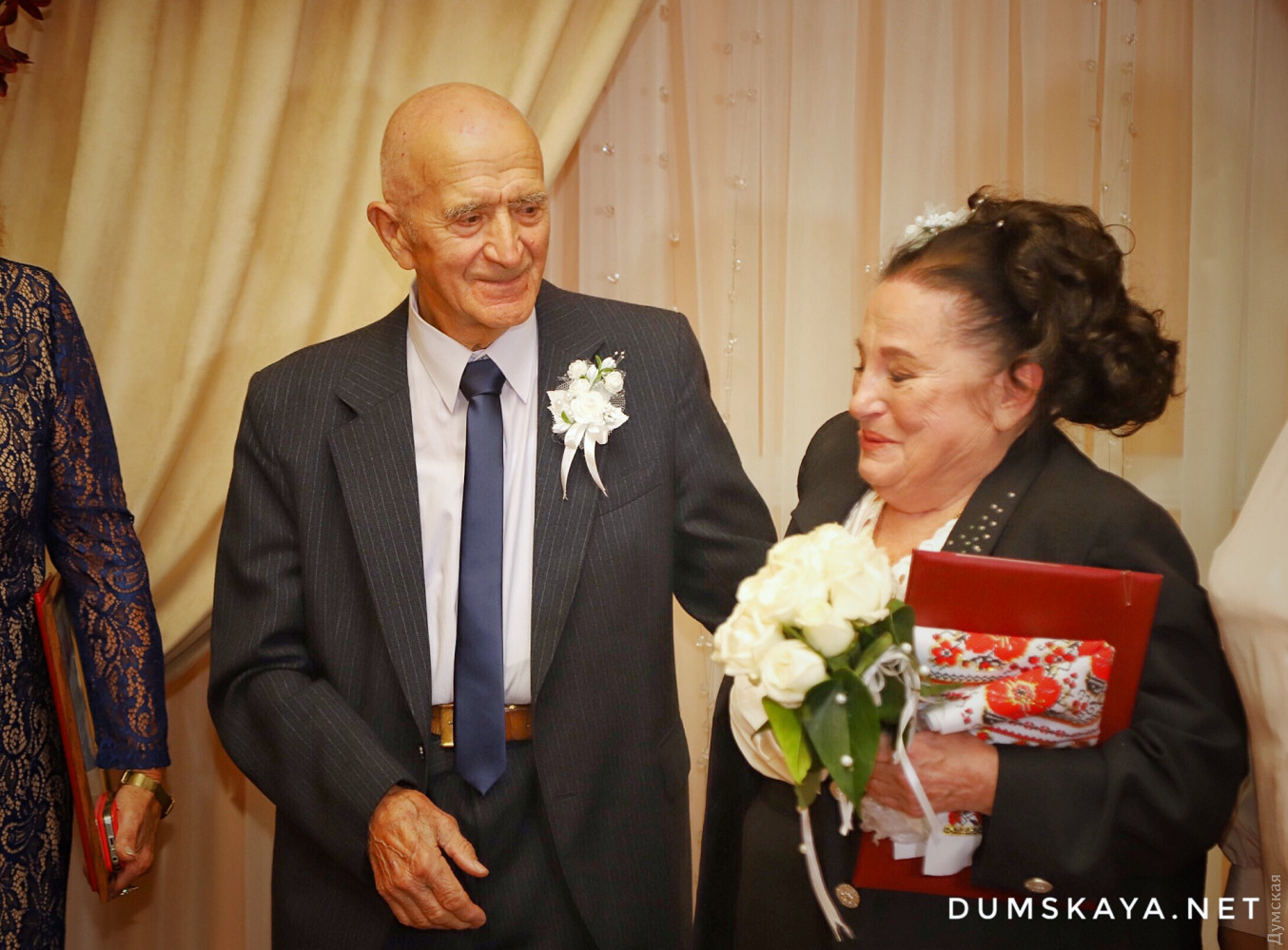 Немногим больше месяца прошло с тех пор, как чета одесситов расписалась в честь своей золотой свадьбы, как еще одна пара побила их рекорд! Сегодня днем в Малиновском РАГСе, что на Успенской, Георгий и Анна Ангеловы отметили бриллиантовый юбилей своей семьи. Молодых в торжественной обстановке заново расписали, как и 60 лет назад, передает корреспондент «Думской». Медсестра Анна и только вернувшийся с военной службы Георгий познакомились в далеком 1956 году. Спустя три года поженились. Сейчас у Ангеловых — двое дочерей, трое внуков и внучек и одна правнучка. Вспоминая прожитые совместно годы, Анна Васильевна советует всем находить компромиссы, быть верными и уметь доверять своему мужу. «Бывало ссорились, белая полоса, серая и черные были, — вспоминает невеста. — Обиделись, надулись, потом подумали. Самое основное это любовь и верность». СМЕРТЬ РОСІЙСЬКИМ ОКУПАНТАМ! Помітили помилку? Виділяйте слова з помилкою та натискайте control-enter |