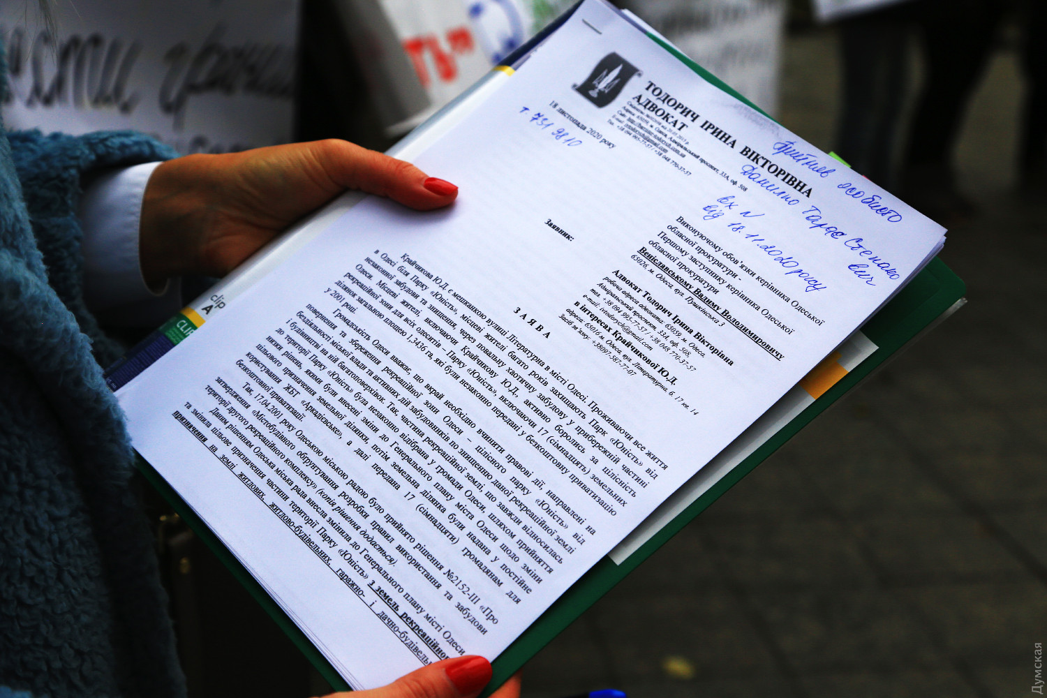 Борьба с застройкой парка «Юность»: прокуратуру просят отменить решение горсовета 20-летней давностиСегодня утром жители Большого Фонтана пикетировали здание прокуратуры Одесской области с требованием вернуть в собственность громады незаконно отчужденные участки рекреационной зоны в парке «Юность». Представляющая интересы протестующих адвокат Ирина Тодорич подала в прокуратуру заявление с требованием отменить оформленные в 2001 году госакты, по которым из территории парка «вырезали» 17 участков под застройку общей площадью 1,34 га. «17 апреля 2001 года горисполком принял решение №2152-III, в котором внес изменения в Генеральный план города Одессы относительно целевого назначения парка «Юность». Рекреационное назначение изменили на жилищное, жилищно-строительное и гаражно- и дачно-строительное», — объяснила Тодорич. Адвокат уверена, что в сегодняшних условиях возможно получить положительное решение судов. «Сейчас есть хорошая позитивная практика Верховного суда, связанная с отменой госактов и возвратом участков в собственность территориальных громад. Мы написали большое консолидированное заявление для того, чтобы прокуратура Одесской области обратилась с иском в суд для отмены нескольких решений горсовета. На многочисленные обращения местных жителей они никак не реагировали, отвечая, что работа ведется. Это было и в 2013, 2014 и 2015 годах. Но на самом деле ничего не было сделано. Зона рекреации парка «Юность» это наша с вами земля», — отметила адвокат. Жители подчеркивали, что не надо ждать пока снова приедут бульдозеры, чтобы копать котлованы, надо сейчас опротестовать решение городского совета. Напомним, борьбу за часть парка «Юность» жители соседних домов ведут уже много лет. Несколько раз в парке попытались начать стройку, протестующие ломали заборы и всячески препятствовали проведению работ. СМЕРТЬ РОСІЙСЬКИМ ОКУПАНТАМ! Помітили помилку? Виділяйте слова з помилкою та натискайте control-enter Новини по цій темі: 6 листопада 2024: Спроба №... Готель-барак на схилі 13-го Фонтану в Одесі все ж визнали незаконним, але боротьба за нього триває 26 листопада 2024: Через кримінальне провадження до продажів: узаконений нахаббуд на одеському узбережжі перетворюється на елітний житловий комплекс (фото) 30 вересня 2024: Одеська прокуратура наполягає на перегляді великої земельної приватизації часів Гурвіца: вимагає повернути землю біля моря 29 липня 2024: Власники закладів в одеській Отраді стверджують, що вже знесли літній майданчик, який збиралася демонтувати мерія (фото) 25 липня 2024: Мерія Одеси хоче демонтувати літні майданчики на Ланжероні та в Отраді: екснардеп зніс усе сам (обновлено) |