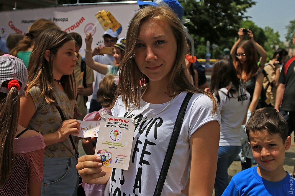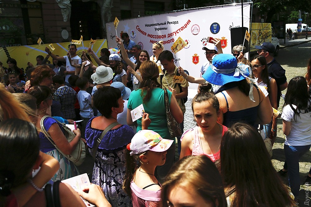 Одесситы устроили массовое поедание мороженого на Дерибасовской: установлен национальный рекордСегодня на Дерибасовской одесситы установили национальный рекорд Украины по одновременному поеданию мороженого. Наш корреспондент засвидетельствовал рекорд. Свыше тысячи добровольцев выстроились в многометровую колонну в ожидании холодной сладости. Продержав потенциальных едоков около часа на жаре, организаторы дождались, когда их количество стало равно примерно 1000 человек, и только тогда начали раздачу. При этом не все начали есть одновременно: многие участники акции, получив в руки желанный продукт, тут же стали его уничтожать. Но рекорд все же состоялся. Не обошлось и без небольшой давки у коробок с мороженым, как бывает всегда при раздаче чего-то бесплатного. После того, как рекорд установили и записали, в Горсаду продолжилось представление с играми и мастер-классом по приготовлению холодного лакомства. СМЕРТЬ РОСІЙСЬКИМ ОКУПАНТАМ! Помітили помилку? Виділяйте слова з помилкою та натискайте control-enter |