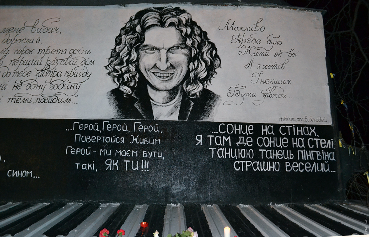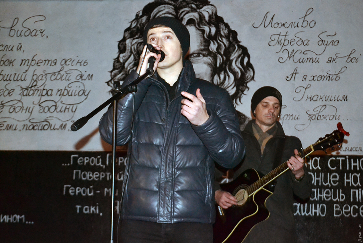 Одесские поклонники творчества Кузьмы Скрябина (Андрея Кузьменко) собрались вечером 2 февраля у стены памяти на Приморском бульваре. Напомним, сегодня исполнилось три года со дня гибели музыканта в ДТП в Днепропетровской области. Акции в память о нем прошли сегодня во многих городах Украины. В Одессе собралось несколько десятков человек. Они слушали песни Скрябина в исполнении коллективов «Две трети», «Николь», и Павла из группы «Free soul». Фото, видео — Андрей Колисниченко СМЕРТЬ РОСІЙСЬКИМ ОКУПАНТАМ! Помітили помилку? Виділяйте слова з помилкою та натискайте control-enter |