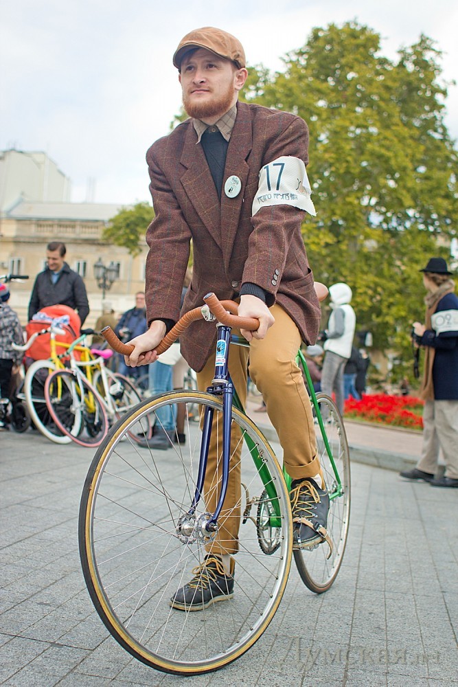 Любители покрутить педали устроили в Одессе настоящий парад ретро-велосипедов. Около полусотни участников в соответствующих событию костюмах проехали сегодня по центральным улицам города. Как рассказал «Думской» одна из организаторов покатушек под названием «Ретро-круиз» Елена Соломенчук, первый ретро-парад был проведен в 2009 году в Лондоне. С тех пор любители винтажа всего мира ежегодно устраивают подобные велопробеги. Главное условие участия — ретро-велосипед и подходящий наряд. После парада участники остановились в одном из расположенных в Горсаду кафе, где определили лучших велостиляг. «Думская» пообщалась с некоторыми велосипедистами. Так, обладательница небесно-голубого немецкого FalterАлена рассказала, что за своим стальным конем она несколько лет охотилась на заграничных форумах. Особой проблемой, по словам девушки, было растаможить купленный в Германии велосипед. Вот уже пять лет он верой и правдой служит своей хозяйке и летом, и зимой. «Мне очень нравится обращать на себя внимание. Зимой я надеваю красивые варежки, шапку с бомбончиками, летом украшаю велосипед корзинкой с живыми цветами. Для меня это не спорт, а очень красивое и стильное хобби. Как автолюбительница я всем советую почаще пересаживаться на велосипед», — говорит Алена. Молодой парень по имени Иван, одетый подобно персонажу из рассказов о Шерлоке Холмсе, собственноручно собрал свой трековый велосипед на основе рамы Харьковского велозавода стоимостью около тысячи долларов. Иван с гордостью демонстрирует прямой привод велосипеда. Примечательно, что тормоза как такового у него нет, зато скорость развивает приличную — Иван умудрялся разгонять свое творение до 50 километров в час. Парень говорит, что с профессиональным спортом тоже никак не связан, это – просто хобби. Фото: Александр Гиманов СМЕРТЬ РОСІЙСЬКИМ ОКУПАНТАМ! Помітили помилку? Виділяйте слова з помилкою та натискайте control-enter |