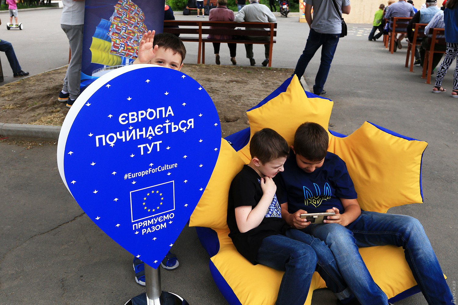 Сегодняшний День Европы в Одессе был богат на события — концерты, открытие регаты, мегамарш, авиашоу. Различные выступления, акции и викторины прошли во всех районах. Впервые в городе этот день отмечали с таким размахом — почти как на 2 сентября. Разве что салюта не было. И, кажется, одесситы с удовольствием приняли новый праздник и поддались царящему настроению свободы и дружелюбия. Фото Сергея Смоленцева СМЕРТЬ РОСІЙСЬКИМ ОКУПАНТАМ! Помітили помилку? Виділяйте слова з помилкою та натискайте control-enter |