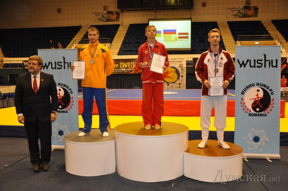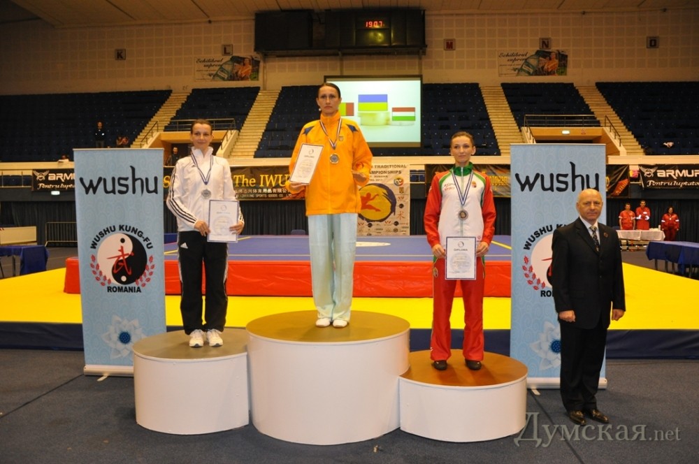 На днях сборная Украины по ушу вернулась из Румынии, где участвовала в чемпионате Европы, проходившем с 9 по 15 апреля. На соревнования съехались более 500 спортсменов из 24 стран Европы. Наши ушуисты, среди которых пятнадцать представителей Одесской области, завоевали в соревнованиях 16 золотых, 22 серебряных и 12 бронзовых медалей, что позволило нашей команде заработать третье место. Одесские ушуисты продемонстрировали высокий уровень подготовки. Зульфия Хажеева завоевала сразу две золотые медали в редких видах ушу - «багуа» и «багуа с большим мечом». Еще одно золото и серебро завоевал президент Одесской областной Федерации ушу и генеральный секретарь Украинской федерации ушу Владимир Федорцов.
