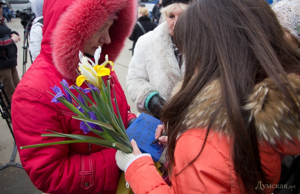 Бойцов встречали цветами и национальными флагами родственники и волонтеры. Как рассказала «Думской» мать одного из солдат Ирина Выхристюк, дождаться своих детей живыми и здоровыми – это огромное, ни с чем не сравнимое счастье.