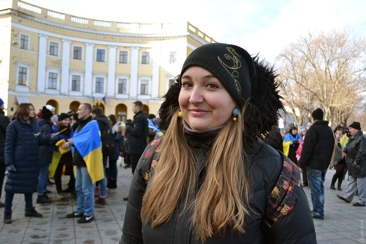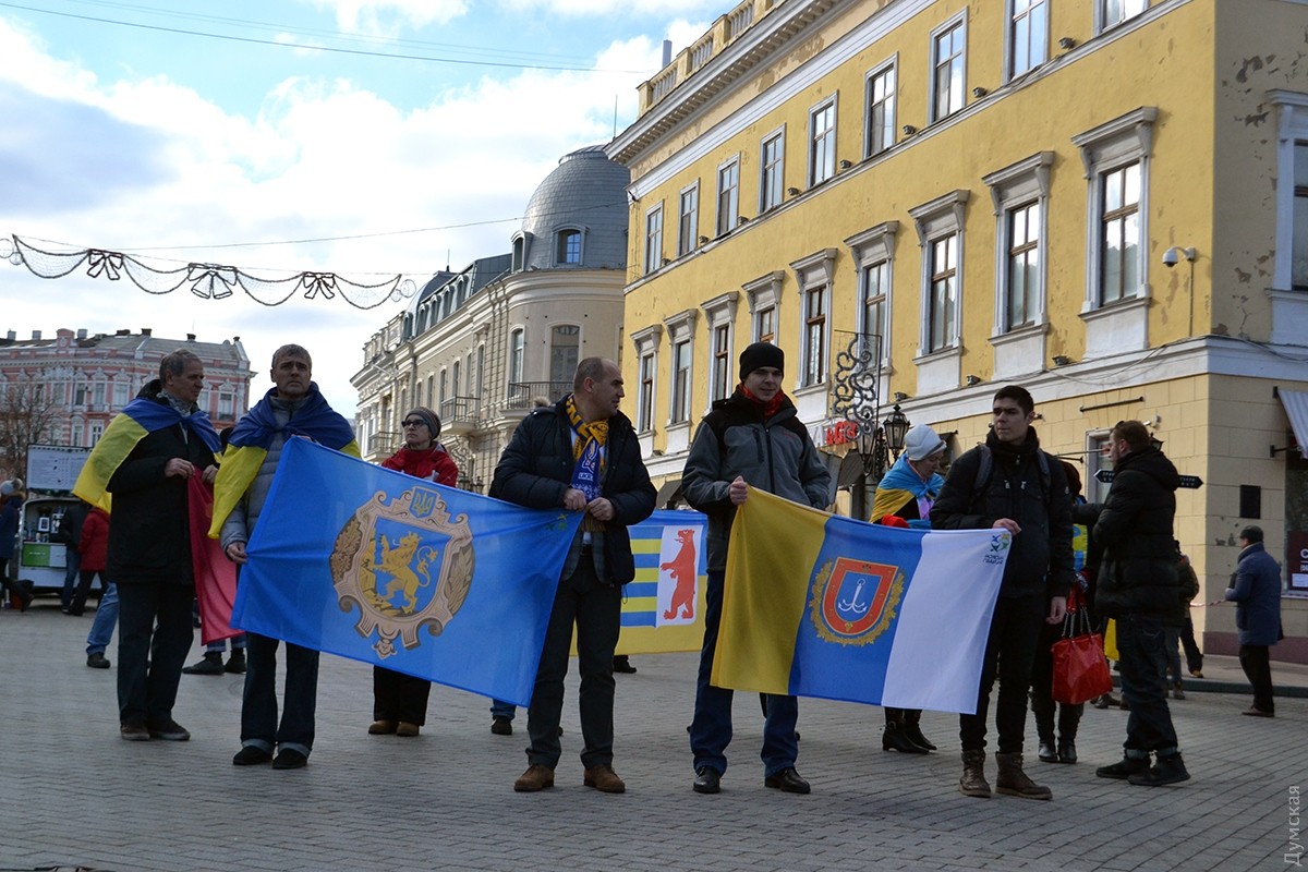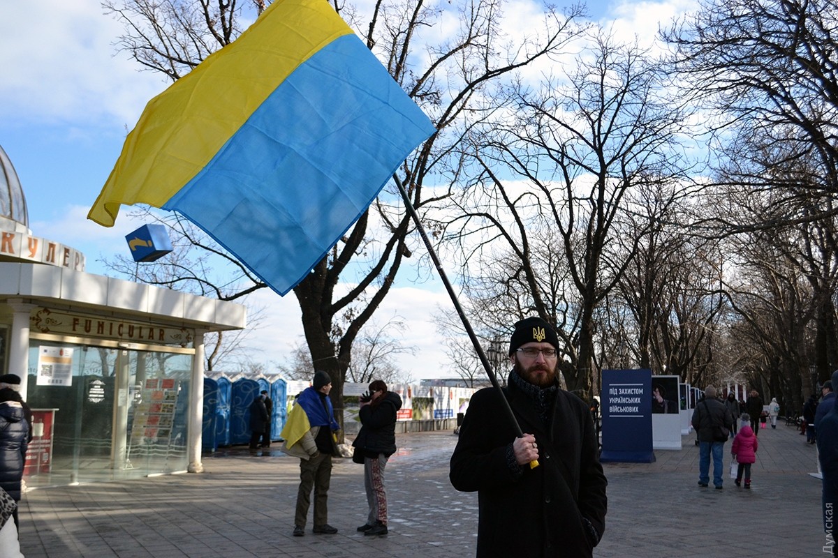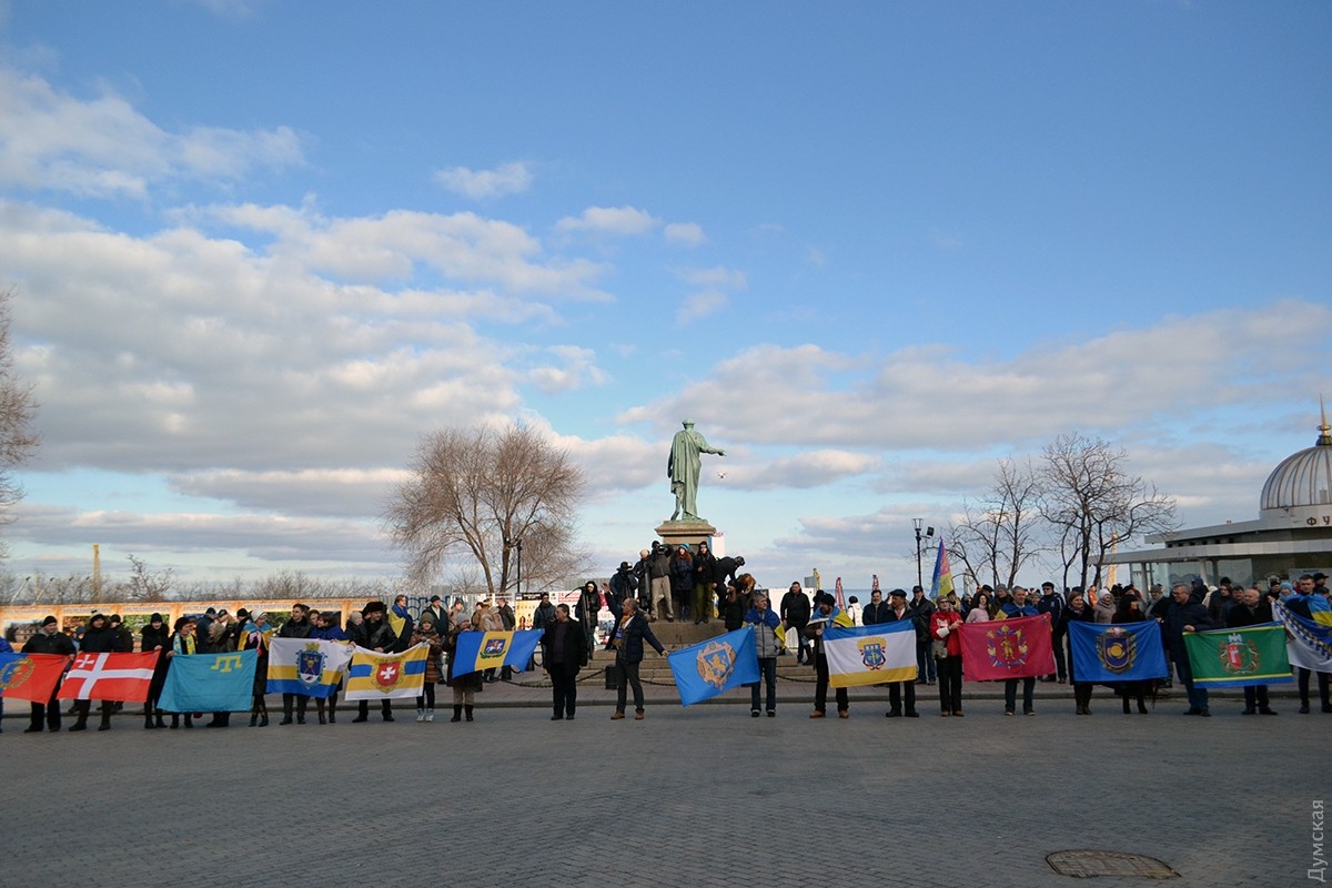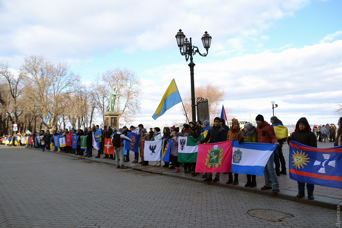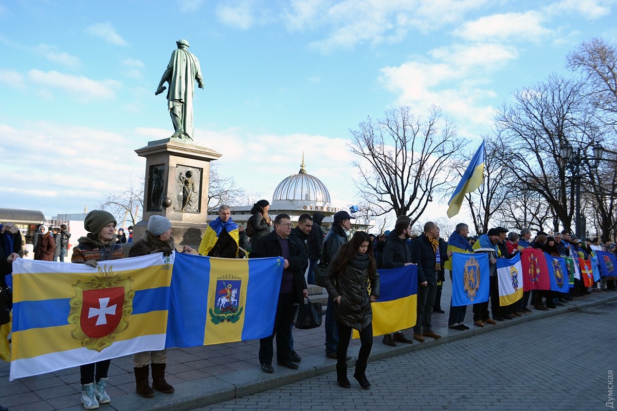 В День соборности Украины несколько сотен одесситов провели флешмоб у памятника Дюку.