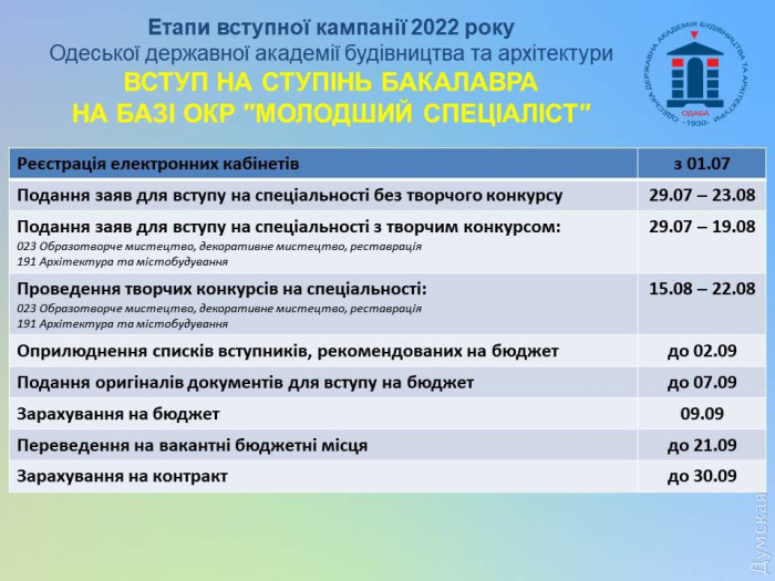 Одесская государственная академия строительства и архитектуры готова к приему абитуриентов (общество)27 мая в украинских школах прозвенел последний звонок и, благодаря героическим действиям нашей армии, сдерживающей атаки неприятеля, юные граждане Украины могут в относительной безопасности строить планы и выбирать свою будущую профессию. По мнению ректора Одесской государственной академии строительства и архитектуры Анатолия Коврова, в ближайшие годы одними из самых востребованных специальностей станут строительные. «После победы нашу страну ждет период восстановления и нужны будут соответствующие специалисты, — уверен руководитель вуза. — Уже сейчас видны изменения спроса на жилье. В восточных областях он конечно падает, однако в западном регионе рост очень большой. В Одессе спрос повысился на 26%. Мы уже можем оценить это по количеству абитуриентов. Несмотря на то, что ситуация пока далека от стабилизации, контакты с абитуриентами растут. Запрос уже есть. Интересуются как выпускники так и те, кто не смог поступить в прошлые годы». В этом году вместо привычного ВНО абитуриентов Национальный мультипредметный тест (НМТ) из трех предметов: украинский язык, математика и история Украины. Первые два были обязательными и для независимого оценивания. Тест можно будет сдать в течение трех сессий. На них выделено 28 дней. Предварительно запланировано, что тестирование будет проходить в 21 области Украины и Киеве. Также утвержден перечень зарубежных пунктов для сдачи НМТ в 23-х европейских странах: Австрии, Бельгии, Болгарии, Великобритании, Дании, Эстонии, Ирландии, Испании, Италии, Латвии, Литве, Молдове, Нидерландах, Германии, Польше, Португалии, Румынии, Словакии, Венгрии, Франции, Хорватии, Чехии и Швеции. Министерство образования разработало пошаговые инструкции для тех, кто будет сдавать НМТ. В свою очередь администрация ОГАСА опубликовала рекомендации, связанные с приемом льготных категорий, а также для тех, кто будет поступать на творческие специальности: художник, архитектор и дизайнер. «С 14 марта мы начали учебный процесс, — рассказывает Анатолий Ковров. – Опыт работы в период карантина сыграл нам на руку. В свое время мы освоили все необходимые коммуникационные средства, вся методическая литература есть в открытом доступе и мы достаточно легко перешли на онлайн обучение. Наши студенты и преподаватели находятся на постоянной связи вне зависимости от того, сколько километров и какие границы их сейчас разделяют. Мы продолжаем международную деятельность и даже более активно, чем в прошлом году, потому что вузы-партнеры изыскали дополнительные резервы, чтобы выделить средства на эти поездки. По нашим прогнозам, в следующем учебном году нас ждет резкое увеличение количества обмена студентами и преподавателями с учебными заведениями Европы». Всю актуальную информацию о работе Одесской государственной академии строительства и архитектуры можно узнать на сайте вуза, а также на официальных страницах в самых популярных социальных сетях: Telegram-канал, Instagram, YouTube и TikTok. СМЕРТЬ РОСІЙСЬКИМ ОКУПАНТАМ! Помітили помилку? Виділяйте слова з помилкою та натискайте control-enter |
