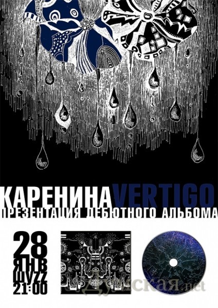 Одесская группа Каренина записала и презентует свой дебютный альбом «Vertigo». Пластинка записана у музыкального и арт-лейбла Кувшинка. «Прежде всего потому, что она формировалась на стыке различных музыкальных культур. Песни из «Vertigo» насыщены ритмическими рисунками трип-хопа, электрической напористостью инди-рока, экзистенциальной поэзией и экспериментами с шумами и резонансами. Что интересно, в составе группы нет, казалось бы, незаменимого в роке элемента — электрогитары, но ее место в стене звука не пустует и занято экспериментальными аранжировками для бас-гитары», — рассказывают в «Кувшинке». Название альбома «Vertigo» — означает головокружение. По словам самих музыкантов, это пограничная полоса, на которой теряется привычное равновесие, момент когда почва уходит из-под ног. Это состояние, сплетенное из чувств и мыслей, из откровений формирующих новый мир, который только начал проявляться и ещё вращается вокруг тебя вместе со старым. Это удивление, волнение и стремление вперед. Записывали и сводили альбом в Одесской студии звукозаписи. Примечательно, что в октябре 2011-го года трек Время из альбома «Vertigo» был издан на лейбле «Far from Moscow» в составе сборника современной независимой музыки постсоветского пространства. Презентация нового альбома состоится 28 января 2012 в 21:00 в одесском концертном клубе ШУZZ (ул. Успенская, 22). СМЕРТЬ РОСІЙСЬКИМ ОКУПАНТАМ! Помітили помилку? Виділяйте слова з помилкою та натискайте control-enter |