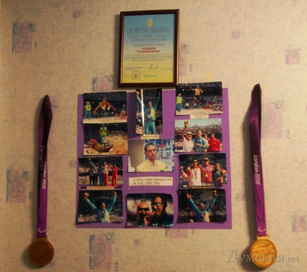 Руслан Катышев, инвалид І группы по зрению, на ХІV Летних Паралимпийских играх в Лондоне завоевал две медали – золотую и бронзовую. «Чемпион вместе с женой и двумя детьми жил в аварийной квартире общей площадью 20 кв.м, а сейчас семья готовится к переезду в просторную 3-х комнатную квартиру на улице Грушевского», — говорится в сообщении. Кроме того, в течение 2013 года Руслан Катышев будет ежемесячно получать от мэрии стипендию в размере 4000 гривен. В свою очередь, в знак благодарности чемпион подарил мэру сувенир из Лондона и пообещал в 2016 году вновь привезти награды в родной город. Напомним, одессит, мастер спорта по легкой атлетике Руслан Катышев 4 сентября завоевал золотую медаль на ХIV летних Паралимпийских играх 2012 года в Лондоне. Руслану не было равных в прыжках в длину. Результат, показанный одесситом, – 6,45 метра. Фото: «odessa.ua»