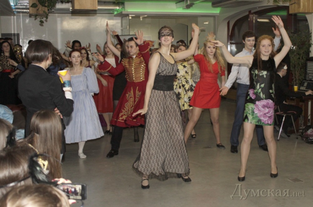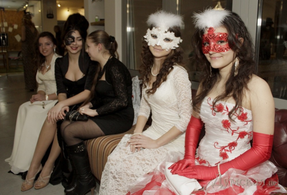 TrueLoveMaskedBall должен был пройти в Одессе в День Святого Валентина, но организационные проблемы вынудили участников маскарада собраться в коворкинг-центре, что на Греческой, 1а, десятью днями позже. «Думская» тоже проникла на костюмированный бал неузнанной. Одесситы любят друг друга не только 14 февраля, бал любви всегда кстати. Попытки проводить балы в двадцать первом веке предпринимались одесситами время от времени, и не особенно удачно, так называемый «бал аристократов» всегда выглядел скорее смешно, чем благородно, и проводился в холодных дворцовых помещениях. А в коворкинг-центре тепло и уютно, декольтированные прелестницы не мерзнут. Одна из организаторов мероприятия Евгения Штекель объявила сбор участников маскарада в социальных сетях и даже провела там же мастер-класс по изготовлению полумаски, которая смотрится как кружевная, хотя сделана из тюля, пленки, раскрашена по шаблону. Тем не менее сама Женя, как и многие ее подружки, явилась на бал в маске из широкой полоски синтетического кружева – тоже модный тренд, правда, это скорее напоминает вуаль, прорезей для глаз нет! Остальные участники воспользовались магазинными и самодельными масками, некоторые смелые девушки просто нарисовали маску на лице гримом. В ход пошли парики, бальные и просто нарядные платья, собственные или взятые напрокат, но смотрелись все стильно.