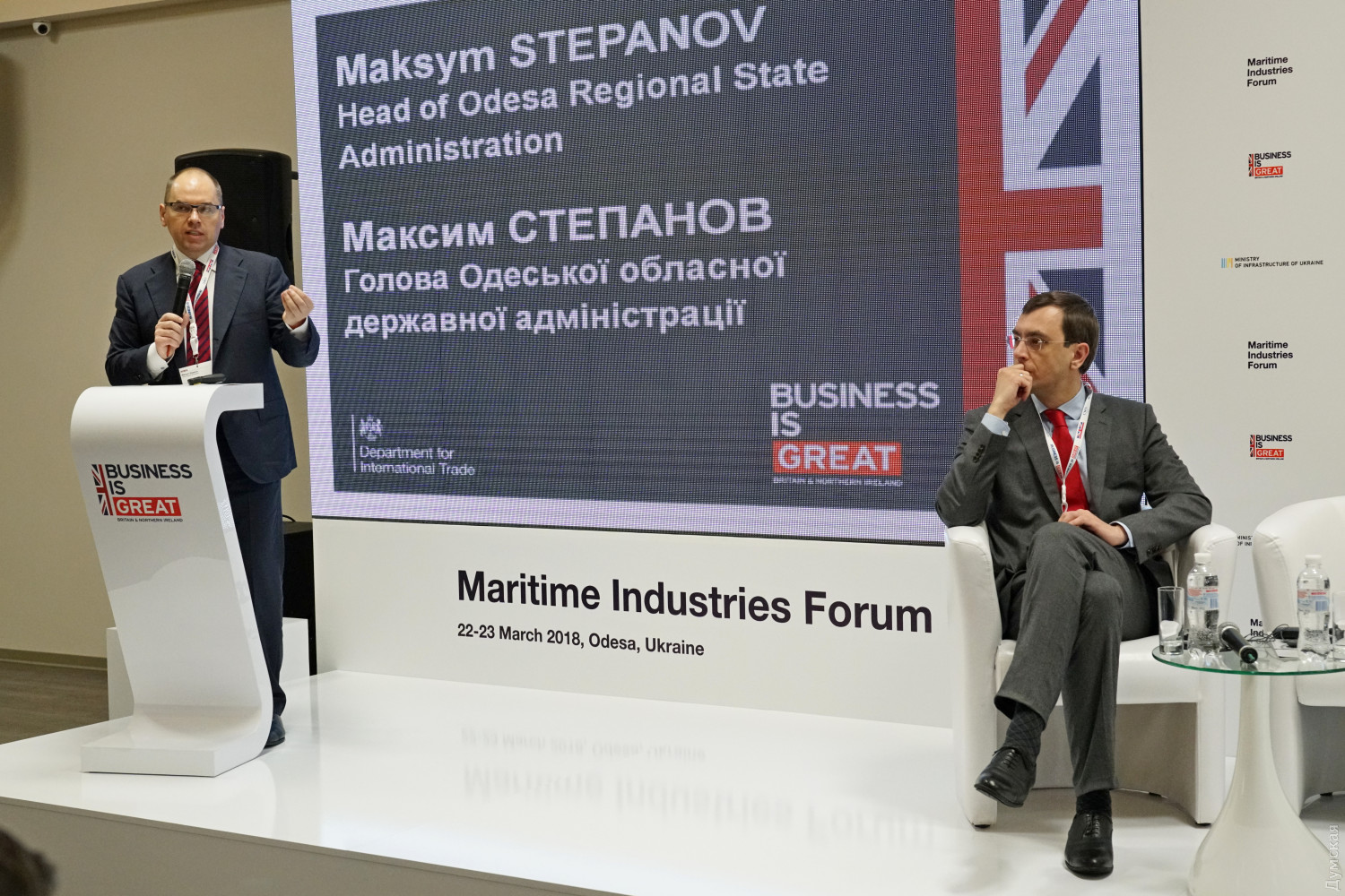 Одесская область планирует использовать опыт Великобритании в развитии морских портовВ Одессе проходит первый британско-украинский морской инфраструктурный форум. В ходе мероприятия губернатор Максим Степанов заявил, что Одесская область планирует использовать британский опыт в сфере морской инфраструктуры и инноваций. «Сердцем инфраструктуры являются порты, дороги, развитие железной дороги. Все это реализуется в Одесской области. Хочу, чтобы Одесская область всегда была примером успешности и привлекательной для инвестиций. Уверен, что те вопросы, которые рассматривают во время форума, в будущем будут воплощены в виде инновационных решений по развитию инфраструктуры нашей страны», — отметил Максим Степанов. Участие в мероприятии принимает заместитель посла Великобритании в Украине Хелен Фейзи, которая настаивает на сотрудничестве министерства инфраструктуры Украины и Одесской областной государственной администрации. Дипломат сообщила, что в Великобритании 90% импорта и экспорта проходит через морские порты. «Наши компании имеют большой опыт в этих вопросах: от дизайна портов к финансам, правовых аспектов и безопасности. Мне приятно видеть такое чрезвычайно большое количество британских компаний здесь. Надеюсь, что это приведет к тесному сотрудничеству с украинскими морскими портами», — отметила Хелен Фейзи. В свою очередь министр инфраструктуры Украины Владимир Омелян, который также принял участие в форуме, поблагодарил посольство Великобритании за поддержку программы «CОST», одним из лидеров которой является Одесская область. «Эта инициатива финансируется правительством Великобритании, в том числе. За счет этого мы имеем независимый профессиональный контроль качества украинских дорог. Именно качество является ключевым элементом 2018 года: мы хотим строить не только много, а так, чтобы эти дороги стояли десятки лет», — отметил министр. СМЕРТЬ РОСІЙСЬКИМ ОКУПАНТАМ! Помітили помилку? Виділяйте слова з помилкою та натискайте control-enter |