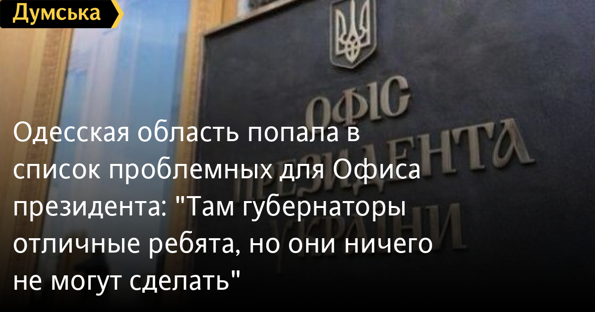 Одесская область попала в список проблемных для Офиса президента: «Там губернаторы – отличные ребята, но они ничего не могут сделать»